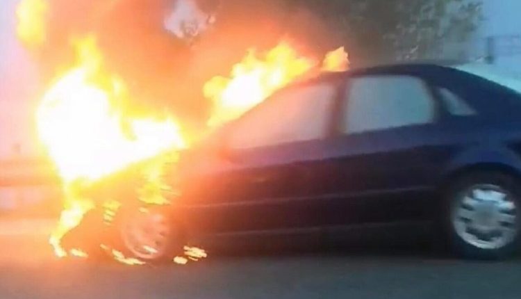 Το μπροστινό μέρος του αυτοκινήτου τυλίχθηκε στις φλόγες ενώ πυροσβέστες που έσπευσαν άμεσα στο σημείο έσβησαν τη φωτιά.
