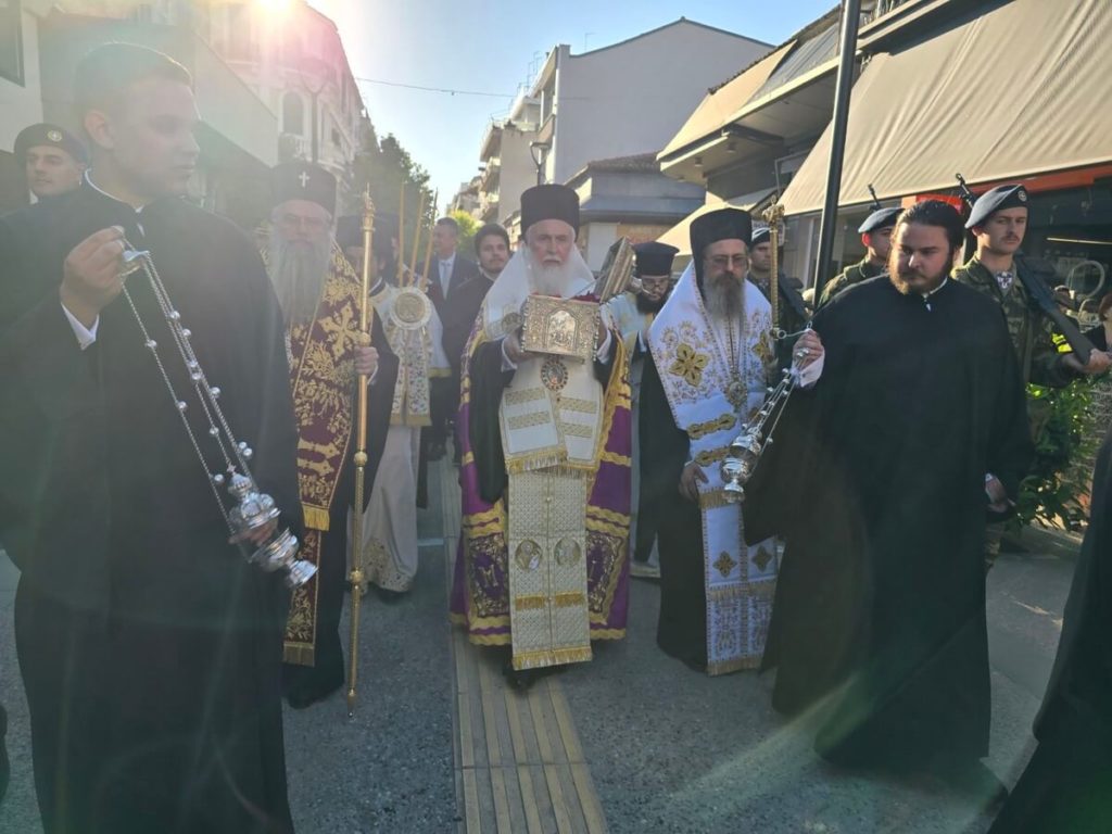 Στο πλαίσιο των ιερών εκδηλώσεων για την υποδοχή της Τιμίας Κάρας του πολιούχου και προστάτου της Καρδίτσας, Ιερομάρτυρος Αγίου Σεραφείμ, πραγματοποιήθηκε το Σάββατο 25 Απριλίουη επίσημη υποδοχή στην πόλη της Καρδίτσας, η οποία έλαβε χώρα έναντι του ξενοδοχείου “Άρνη”, παρουσία Ιερού Κλήρου, τοπικών αρχών και πλήθους πιστών.