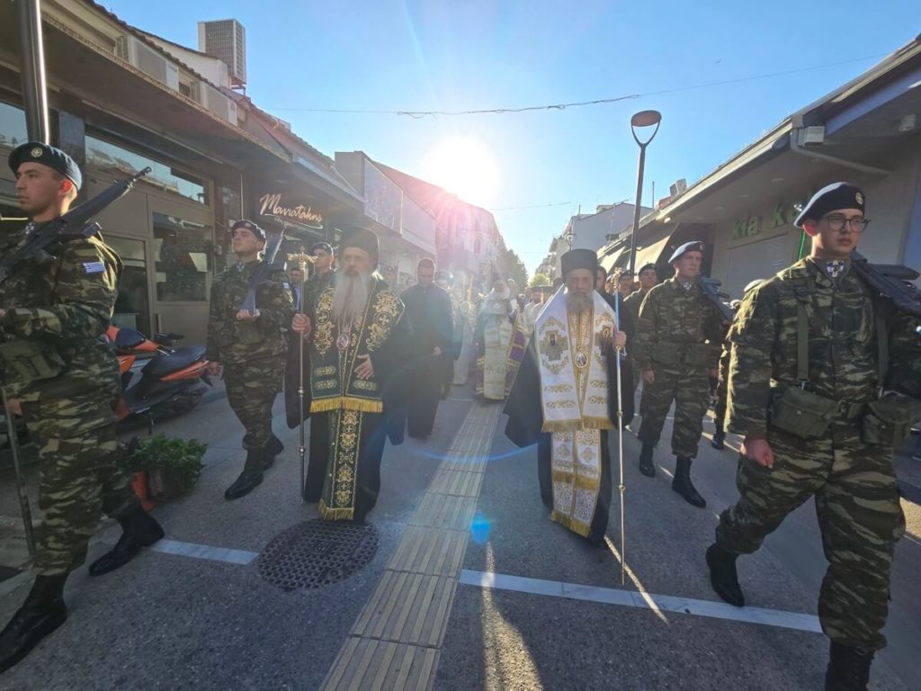 Στο τέλος της ιεράς ακολουθίας, ο Μητροπολίτης Θεσσαλιώτιδος και Φαναριοφερσάλων κ. Τιμόθεος αναφέρθηκε στο πνευματικό βάθος της περιόδου του Πεντηκοσταρίου και στο μήνυμα της Αναστάσεως μέσα στη ζωή της Εκκλησίας. Όπως τόνισε, η Αγία μας Εκκλησία μέχρι και την Κυριακή του Θωμά οδηγεί τους πιστούς σε μια σταδιακή πνευματική πορεία, ώστε να γίνουν κοινωνοί της εμπειρίας του Αποστόλου Θωμά, ο οποίος αξιώθηκε να δει και να ομολογήσει τον Αναστημένο Χριστό. Η περίοδος αυτή δεν αποτελεί απλή ανάμνηση γεγονότων, αλλά πρόσκληση σε προσωπική μετοχή στο μυστήριο της Αναστάσεως. Αμέσως μετά, η Εκκλησία εισάγει τους πιστούς σε μια νέα περίοδο μνήμης και τιμής δύο ομάδων προσώπων. Του Ιωσήφ από Αριμαθαίας και του Νικοδήμου, οι οποίοι με τόλμη ζήτησαν το σώμα του Ιησού για τον ενταφιασμό Του, και των Μυροφόρων γυναικών, που παρά τον φόβο και τις ανθρώπινες αδυναμίες έσπευσαν τα χαράματα στον τάφο για να προσφέρουν τις τιμές της αγάπης τους. Μέσα από αυτές τις μορφές αναδεικνύεται η αρετή της τόλμης και του θάρρους. Η Ανάσταση δεν συμβιβάζεται με τον φόβο και την ατολμία, αλλά φανερώνεται εκεί όπου υπάρχει γενναία πίστη και εμπιστοσύνη στον Θεό, ο οποίος μεταμορφώνει την ανθρώπινη αδυναμία.