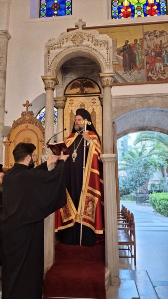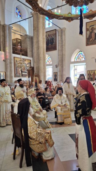 Ευχαρίστησε ιδιαιτέρως τον Σεβασμιώτατο Μητροπολίτη Νέας Ζηλανδίας κ. Μύρωνα, τους Θεοφιλεστάτους Επισκόπους Απαμείας κ. Παΐσιο και Κνωσού κ. Μεθόδιο, τον ιερό κλήρο, τις αρχές και τον πιστό λαό για την παρουσία και τη συμμετοχή τους στη μεγάλη αυτή εορτή, ευχόμενος πατρικά στον ευσεβή λαό.