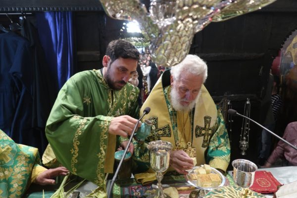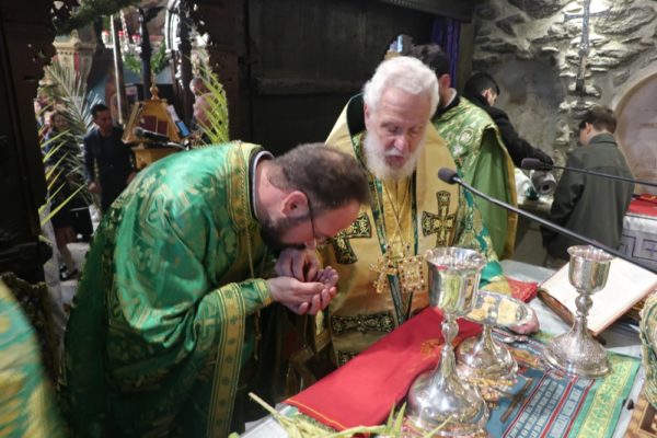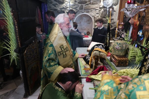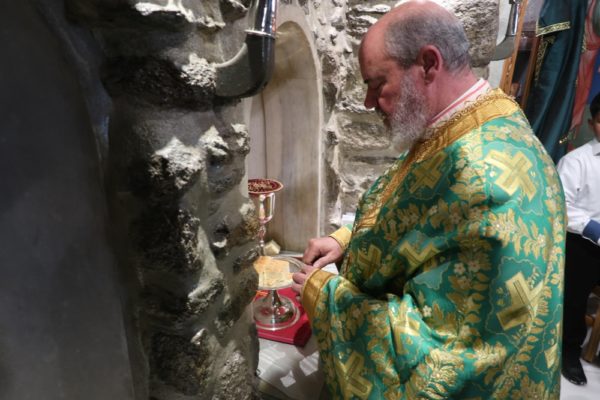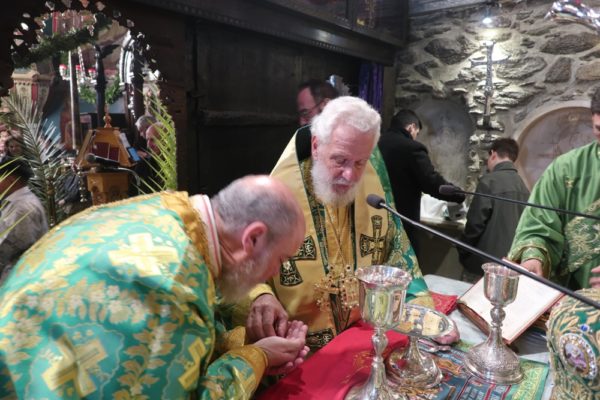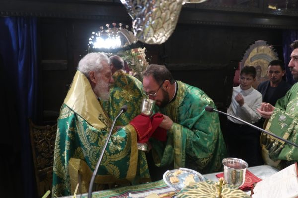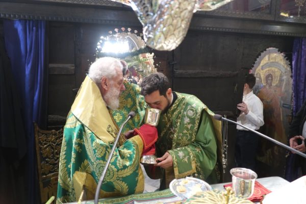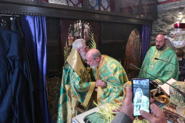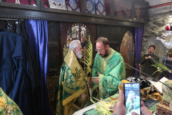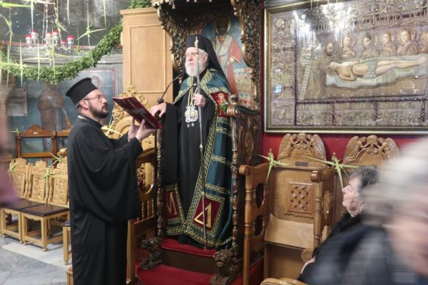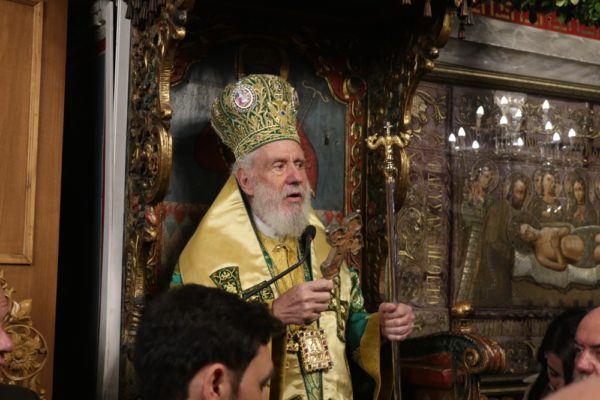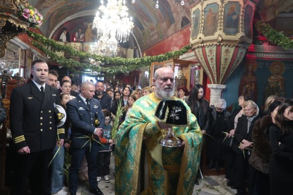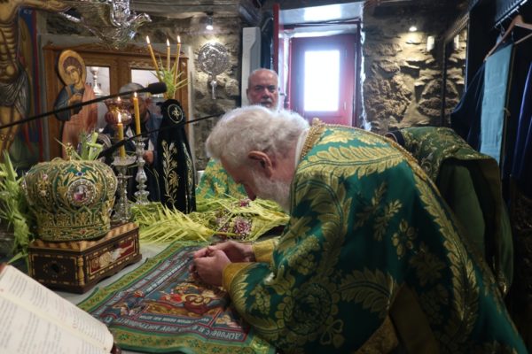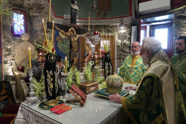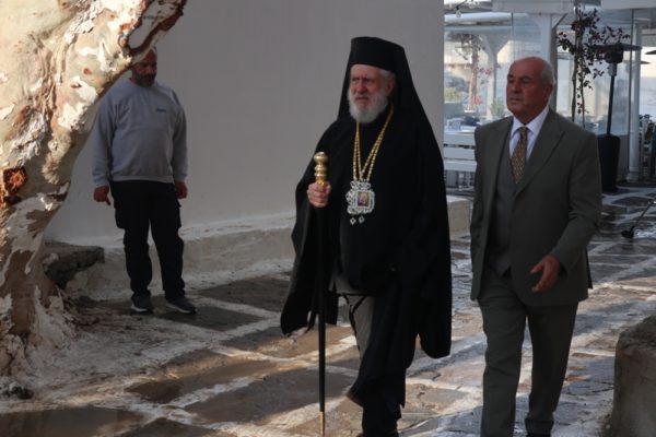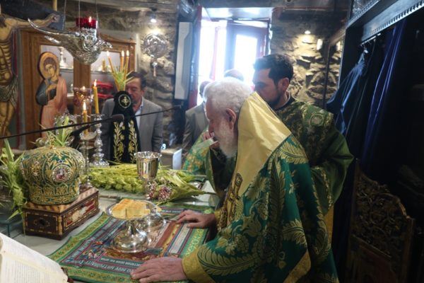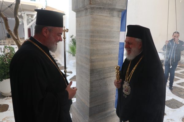 Το μεσημέρι, ο Σεβασμιώτατος έπλευσε στην ιερά νήσο Τήνο και το απόγευμα τέλεσε την Ακολουθία του Νυμφίου στον Πανίερο Ναό της Ευαγγελιστρίας.