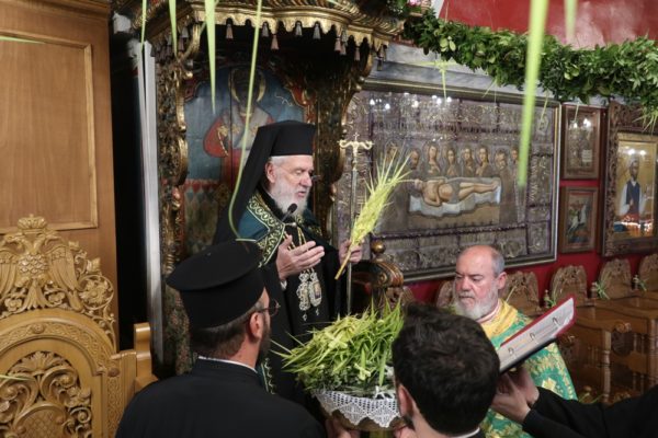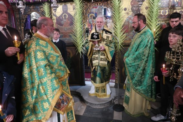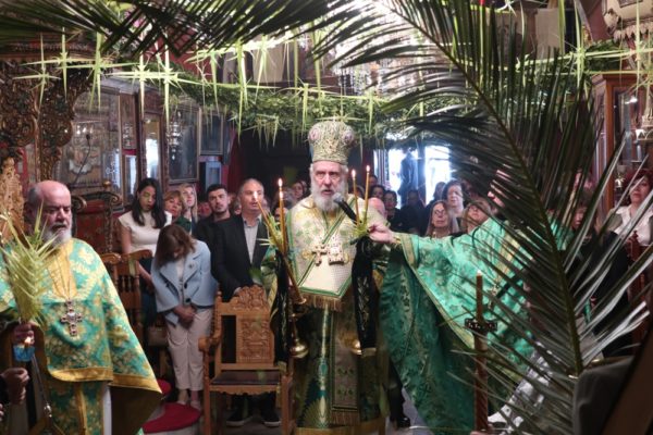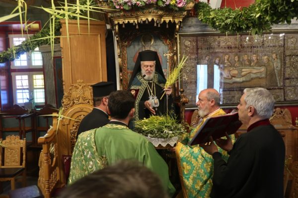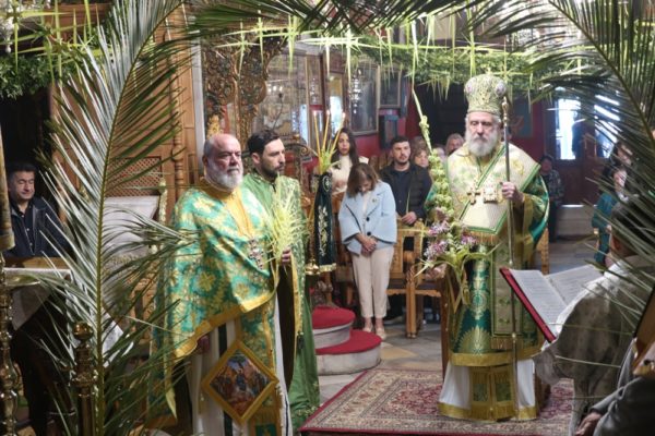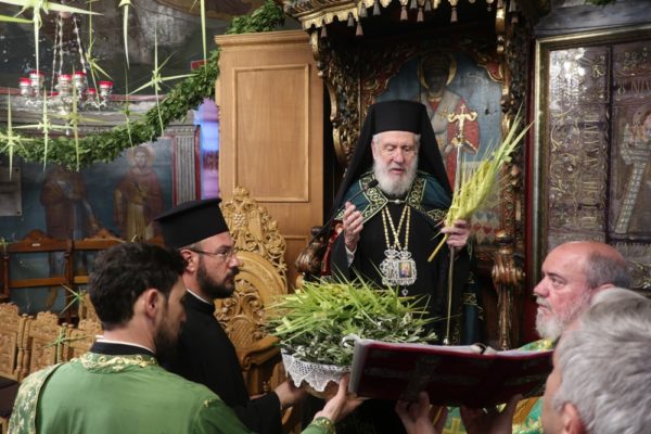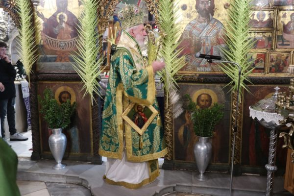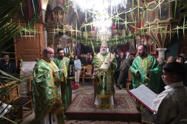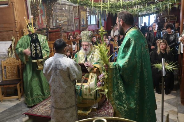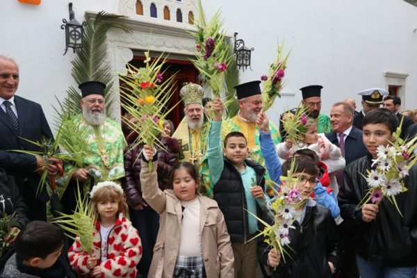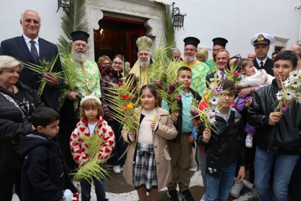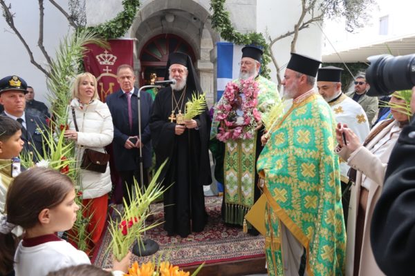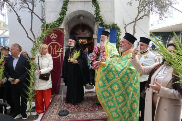 Ειδικότερα ο Σεβασμιώτατος Μητροπολίτης Σύρου κ. Δωρόθεος Β’, ιερούργησε στον Μητροπολιτικό Ναό της Μεγάλης Παναγιάς, ο οποίος ήταν καταστόλιστος από σταυροειδή παραδοσιακά Βάγια, που, κατά το τοπικό έθιμο, αποσπούν οι πιστοί από τους πολυελαίους και τις κανδήλες, εκ των οποίων επικρέμανται, κατά την ανάγνωση της Ευαγγελικής φράσεως «καί έλαβον τα βάϊα των φοινίκων».