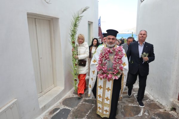 Σύσσωμος ο λαός της Μυκόνου, πιστός και αμετακίνητος τηρητής των πατρώων παραδόσεων και των εθίμων, που από τους προγόνους του παρέλαβε και στο πέρασμα των αιώνων στη συλλογική του μνήμη ζωντανά διατήρησε, εόρτασε σήμερα με λαμπρότητα και κατάνυξη την Κυριακή των Βαΐων, με την πάνδημη λιτανεία της Βαϊοφόρου στη Χώρα.