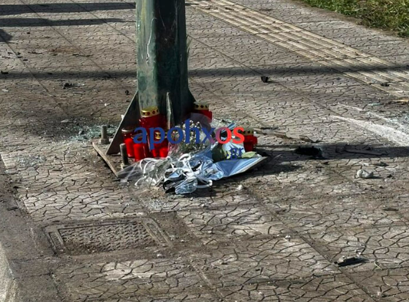 Λουλούδια και κεριά στο σημείο που έχασαν τη ζωή του από τροχαίο ο 19χρονος Νίκος και η 17χρονη Αγγελική από την Πάτρα