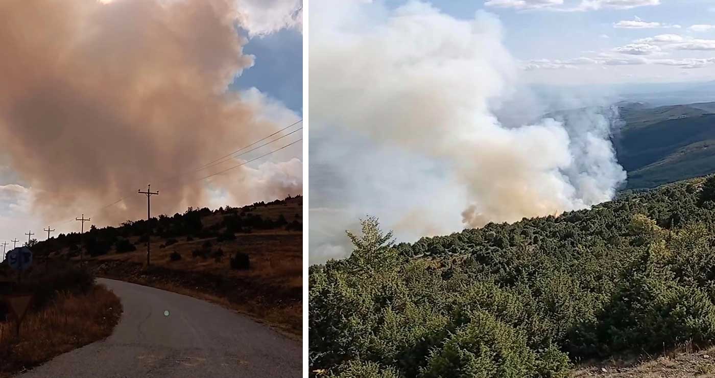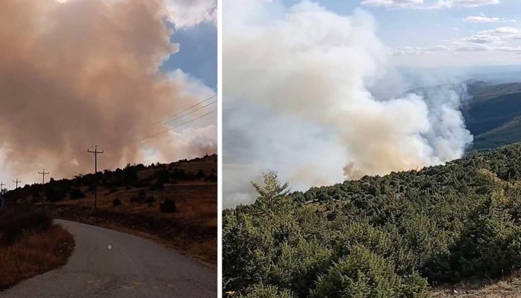 Μαίνεται η πυρκαγιά στην Βλάστη Εορδαίας που καίει χορτολιβαδική έκταση και δάσος κοντά στο μοναστήρι του Αγίου Παντελεήμονα, ενώ έχει φτάσει ήδη στην κορυφή του βουνού.