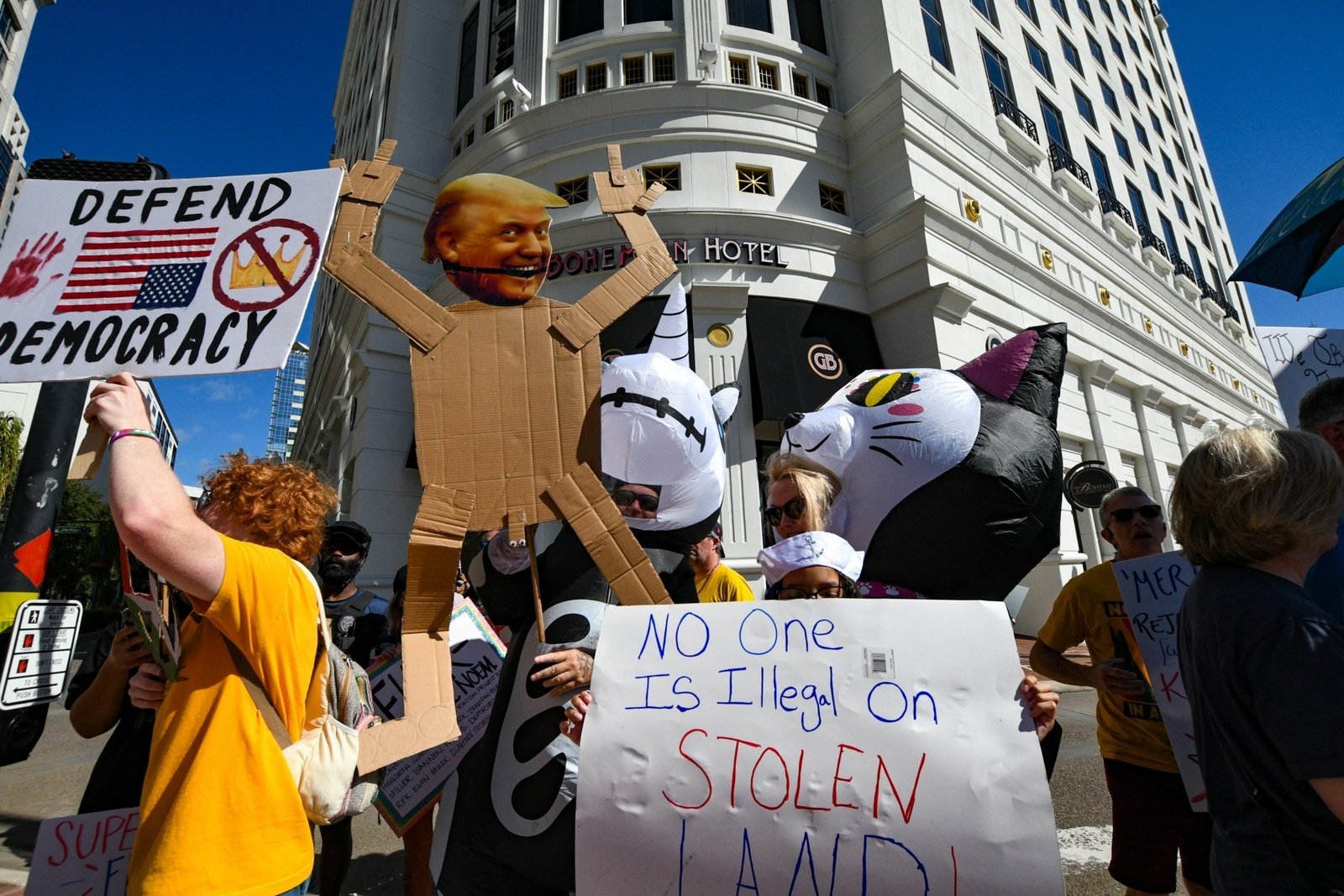 Ο διαδηλωτής Aliston Elliot, φορώντας ένα κάλυμμα κεφαλής με το άγαλμα της Ελευθερίας και κρατώντας ένα πλακάτ με τη φράση «Όχι στους επίδοξους δικτάτορες», είπε: «Θέλουμε να δείξουμε την υποστήριξή μας στη δημοκρατία και στον αγώνα για το σωστό. Είμαι κατά της κατάχρησης εξουσίας».
