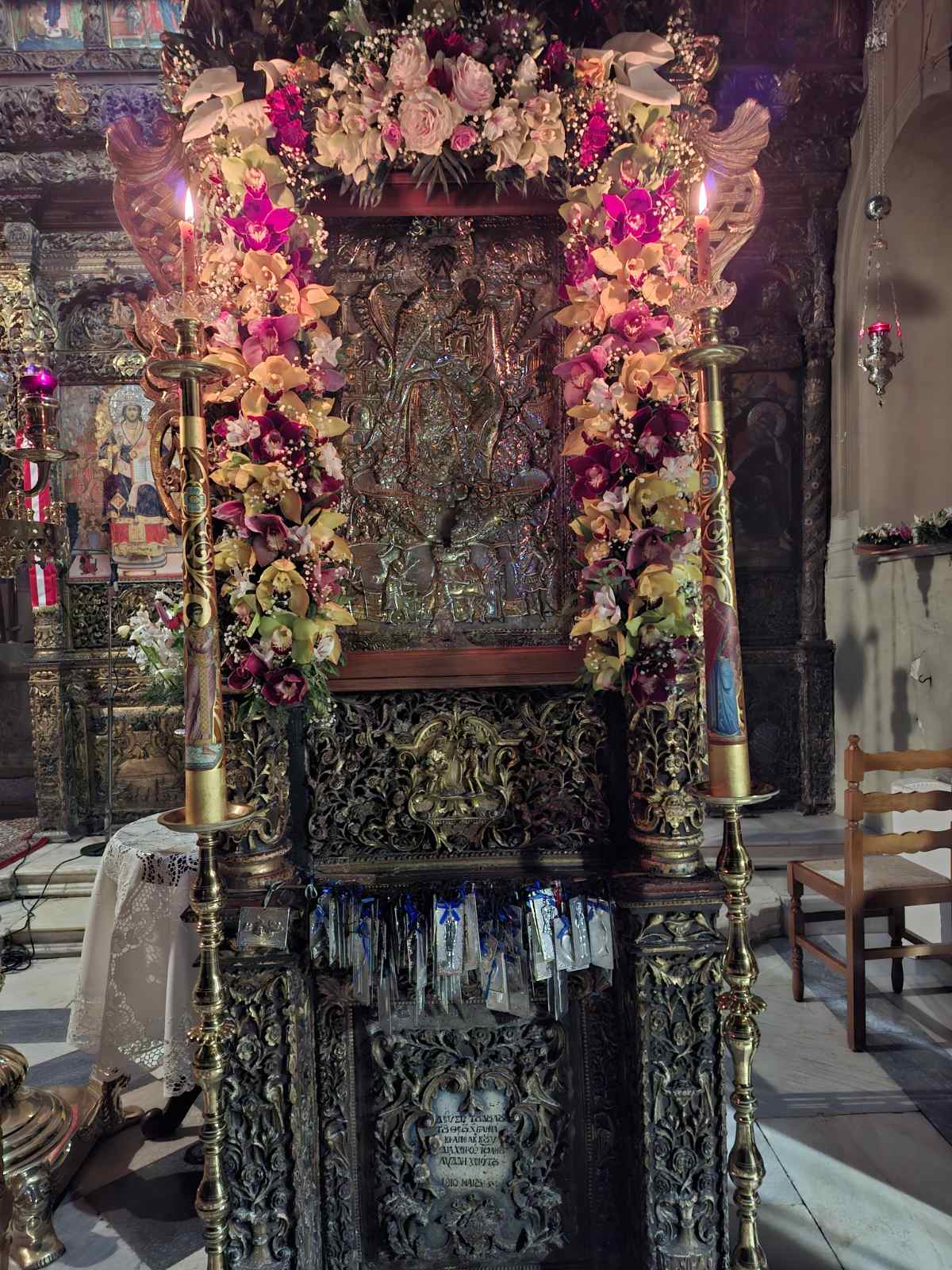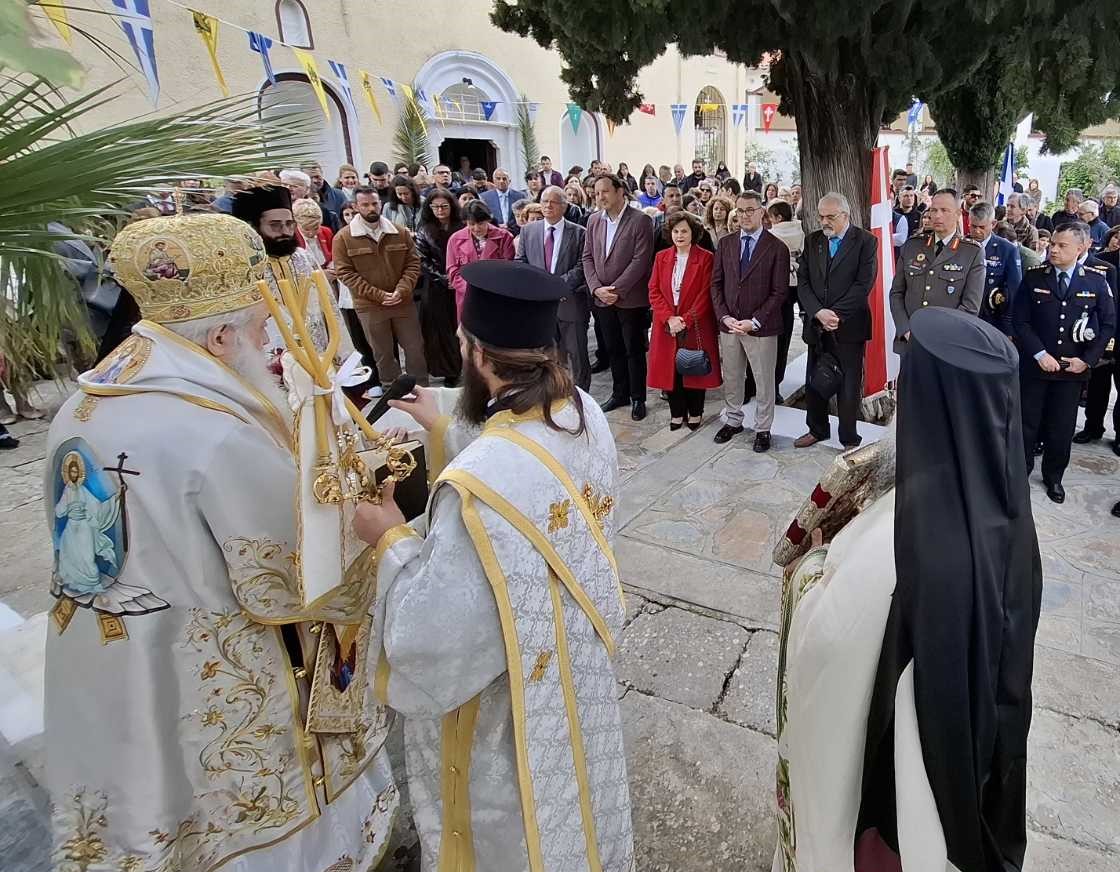 Επίσης, ευχαρίστησε τους Ιερείς, με πρώτο τον Πρωτοσύγκελλο της Ιεράς Μητροπόλεως, Πανοσιολ. Αρχιμ. π. Σωτήριο Κοσμόπουλο, ο οποίος διακονεί εφημεριακώς την Ιερά Μονή, τις Πολιτικές και Στρατιωτικές Αρχές της Νήσου, καθώς και όλους τους ευλαβείς προσκυνητές, οι οποίοι προσήλθαν και κατέκλυσαν τον ιερό χώρο.