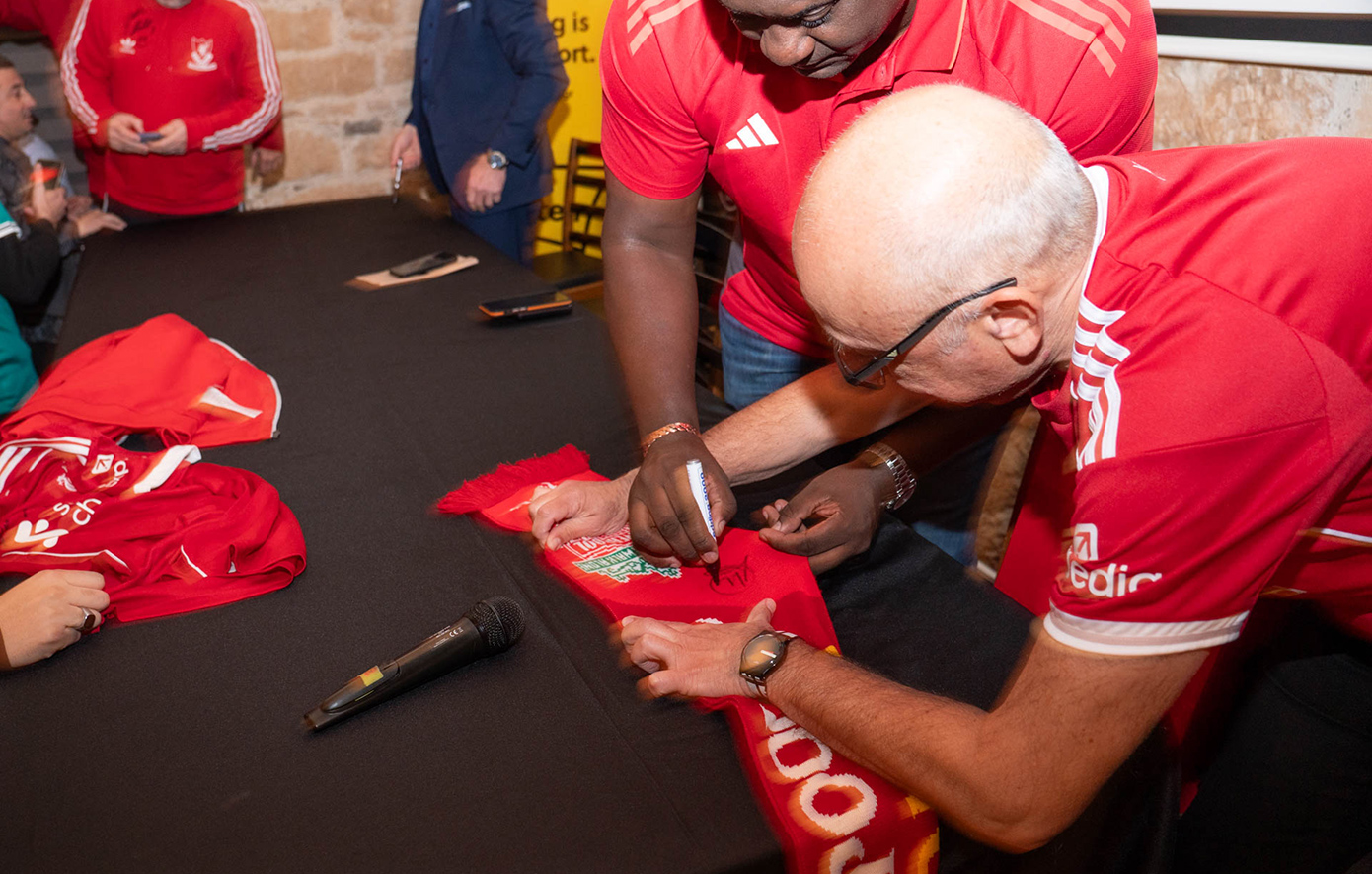 Οι καλεσμένοι συζήτησαν, υπέγραψαν αυτόγραφα και φωτογραφήθηκαν με τους φίλους της Liverpool FC χαρίζοντας μοναδικές στιγμές σε όλους τους παρευρισκόμενους, μεταξύ των οποίων ήταν και μέλη τόσο της Πανελλήνιας Λέσχης Φίλων Liverpool – OLSC Greece, ο πρόεδρος της οποίας, Γιάννης Σκοτίδας, παρέδωσε τιμητική πλακέτα τον Emile Heskey, όσο και του Official Liverpool Supporters Club Thessaloniki.