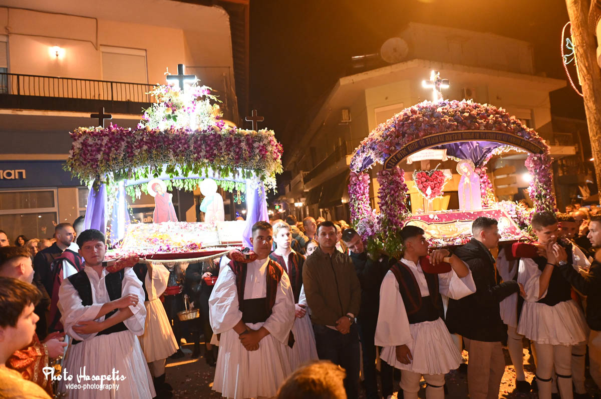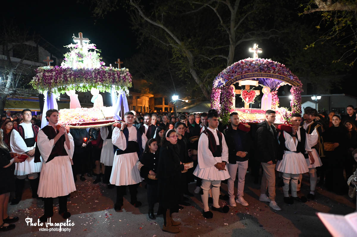 Κατανυκτική ατμόσφαιρα και πλήθος πιστών παρακολούθησαν την περιφορά των ολοστόλιστων με άνθη Επιταφίων των εκκλησιών Αγ.Δημητρίου και της Αγ.Θεοδώρας, στον όμορφο παραδοσιακό οικισμό του Κολινδρού.
