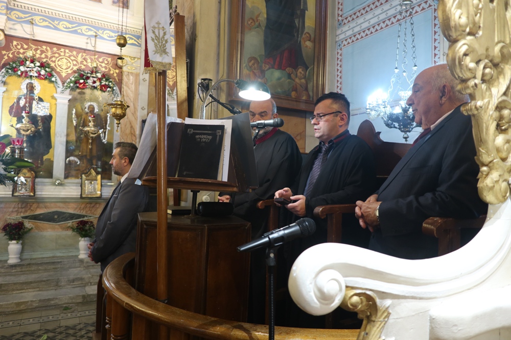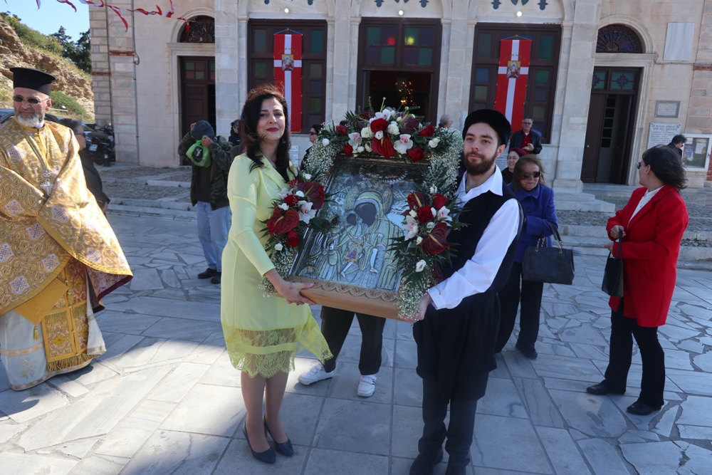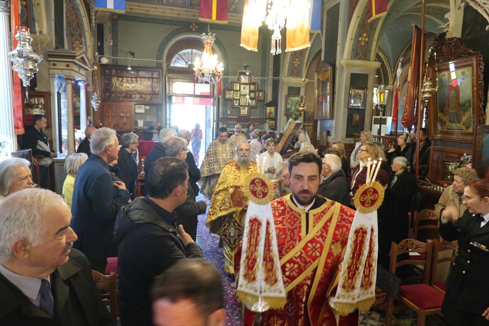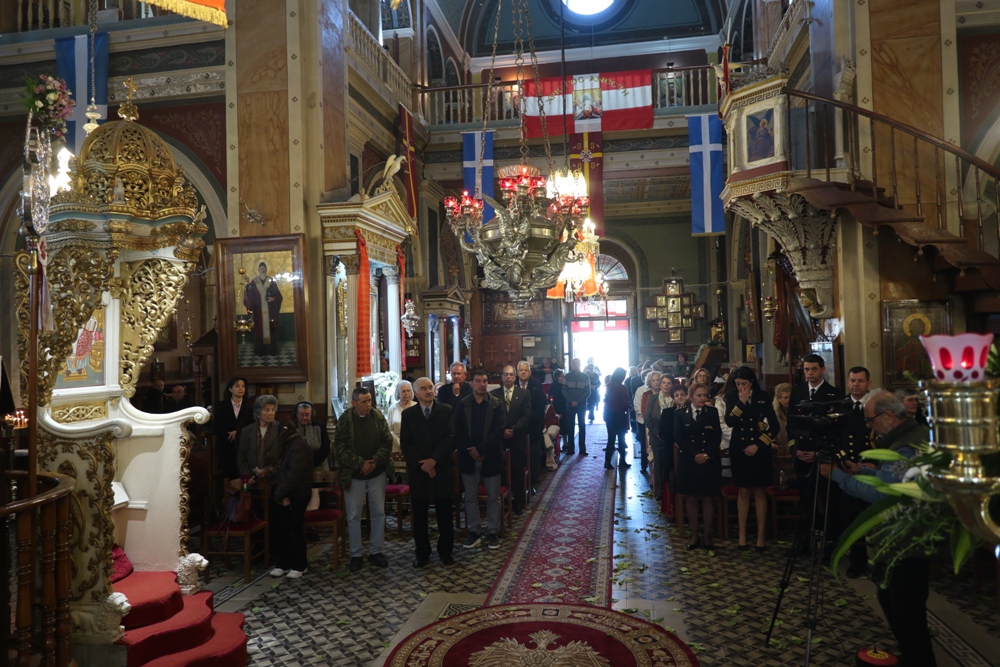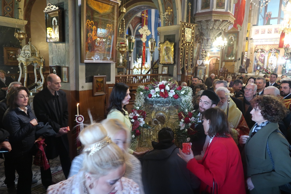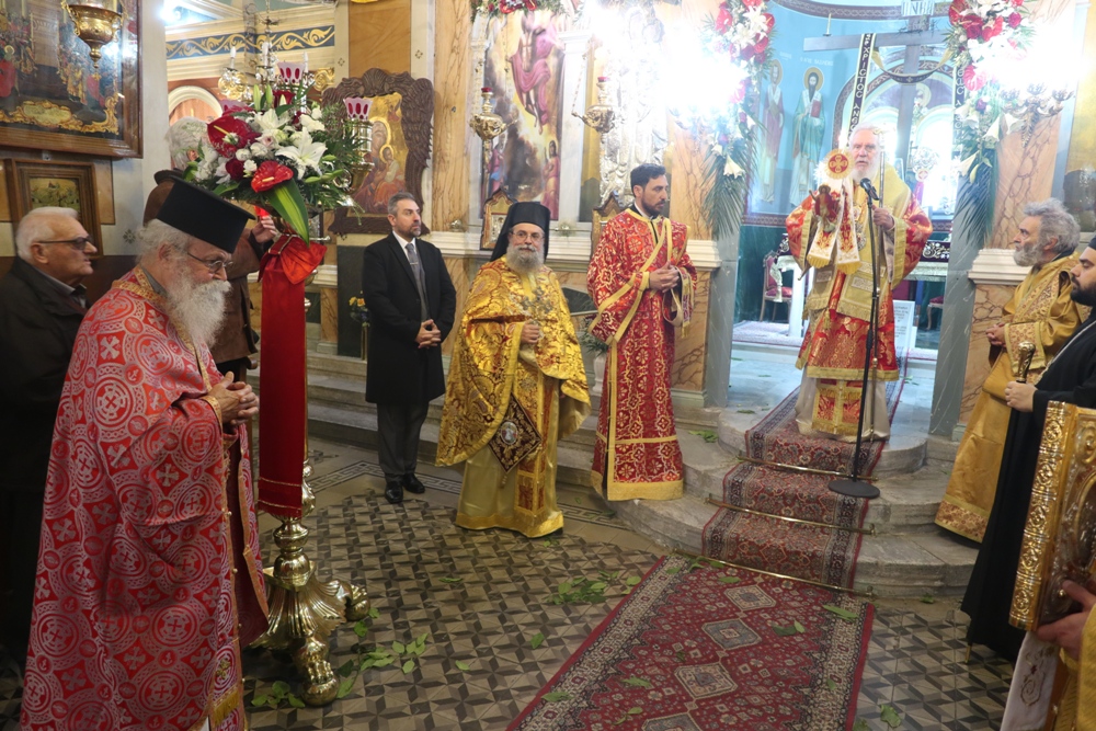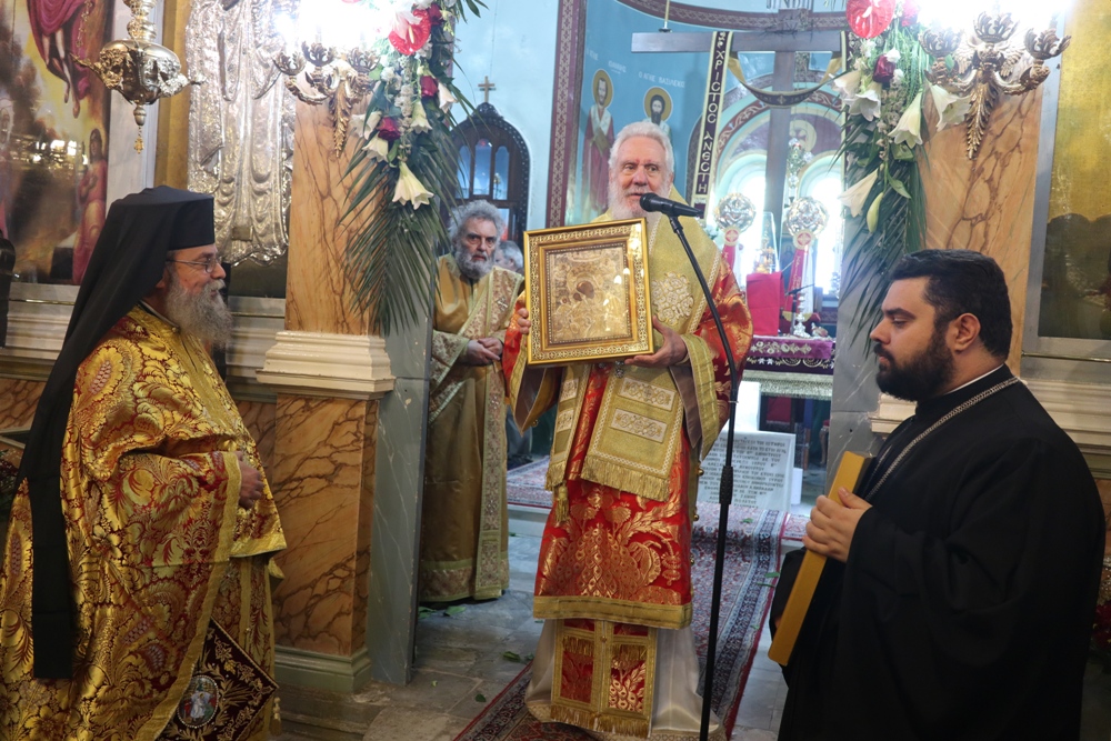 Ο Σεβασμιώτατος ιερούργησε με τη συλλειτουργική συμμετοχή του κομίσαντος εξ Αθηνών την ιερά Εικόνα της Παναγίας της «Ατταλειωτίσσης» Αρχιμ. Ραφαήλ Κατακεχαγιά» Εφημερίων από άλλες Ενορίες και των Διακόνων, και με την παρουσία του Δημάρχου Σύρου- Ερμούπολης κ. Αλέξ. Αθανασίου, του Αντιδημάρχου Καθημερινότητας κ. Ιω. Μαραγκού, του Θεματικού Αντιπεριφερειάρχη Μεταφορών κ. Μ. Δαδάου, Δημοτικών και Κοινοτικών Συμβούλων, του Υποστράτηγου -Περιφερειακού Διευθυντή της Ελληνικής Αστυνομίας και του Διευθυντού των Αστυνομικών Υπηρεσιών Κυκλάδων, της Λιμενάρχου και του Υπολιμενάρχου Σύρου, εκπροσώπου των Πυροσβεστικών Υπηρεσιών, του Προέδρου του Συνδέσμου Συριανών, της Προέδρου και μελών του Συλλόγου Μικρασιατών Ερμούπολης Σύρου με παραδοσιακές ενδυμασίες, της Προέδρου της Αδελφότητας Ανωμεριτών Μυκόνου και πολλών πιστών.