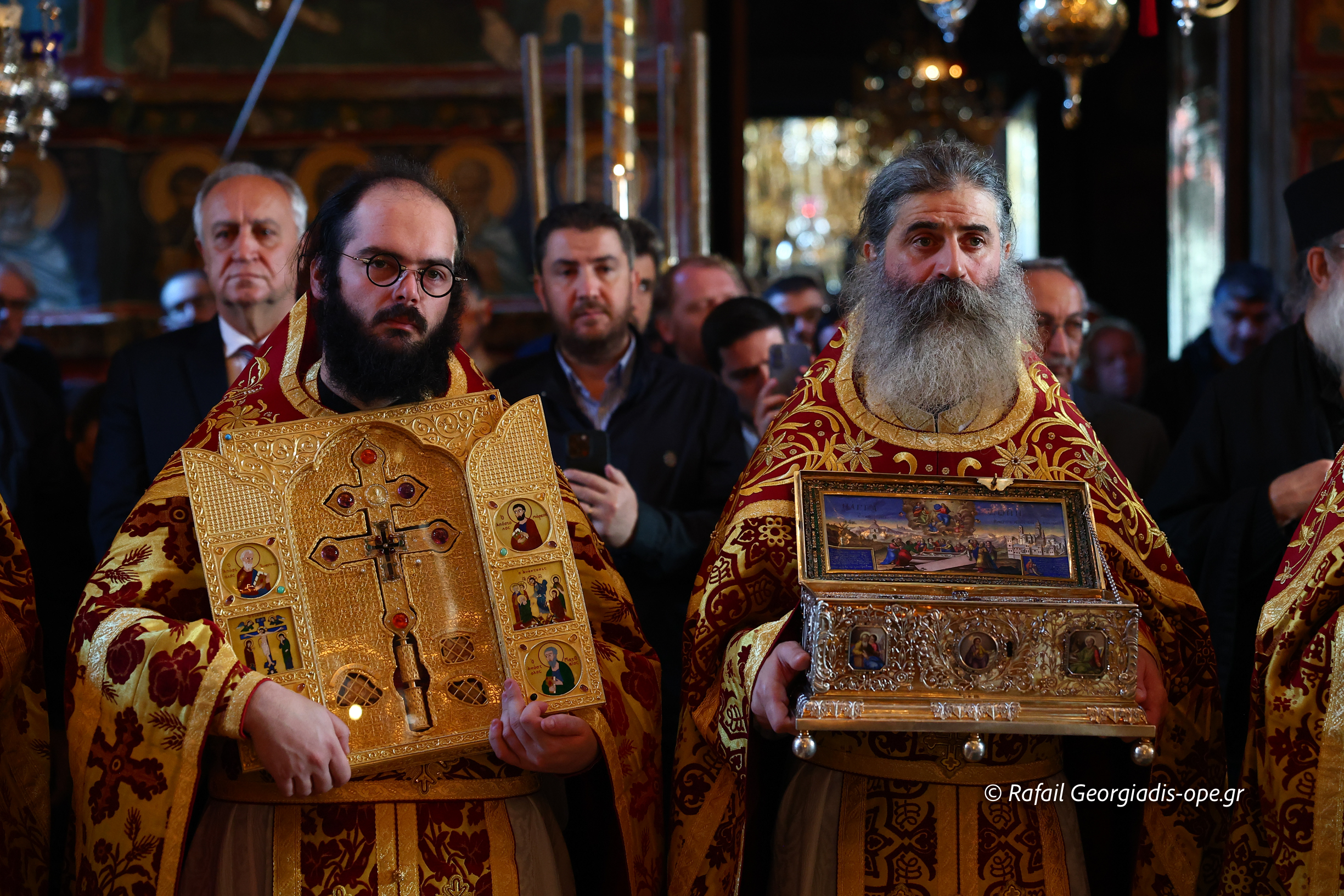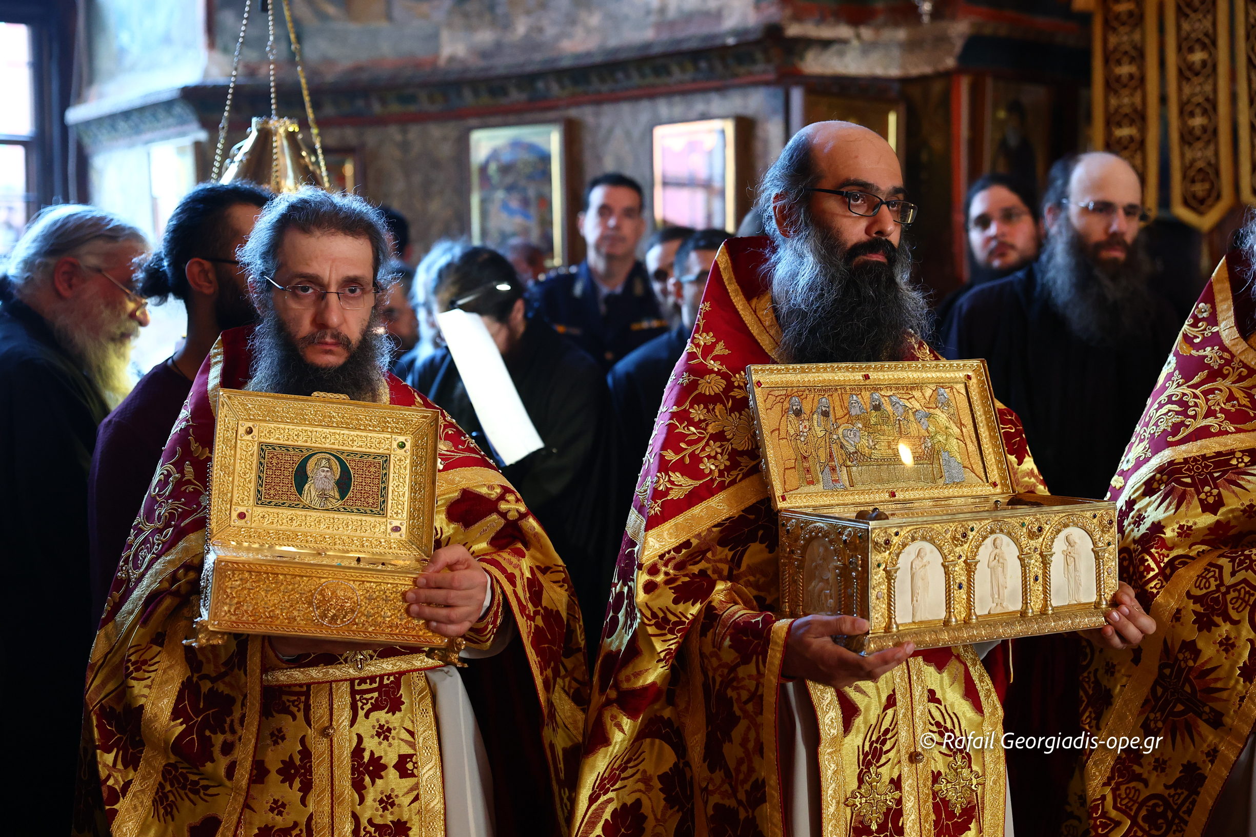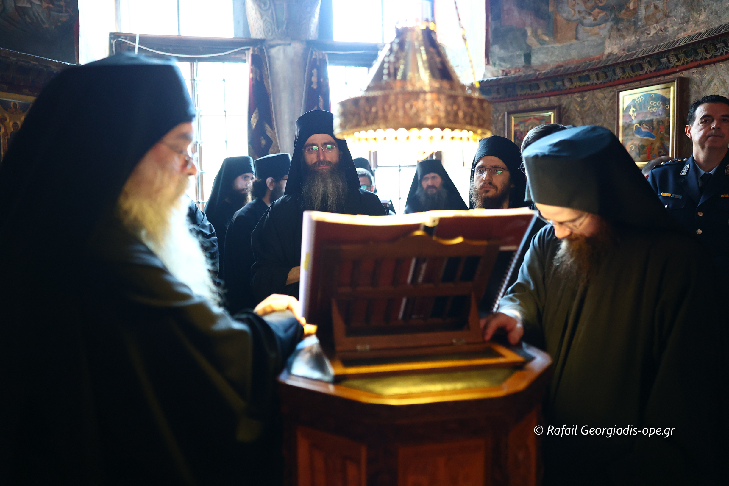 Της πανηγύρεως προεξήρχε ο Πανιερώτατος Μητροπολίτης Λεμεσού κ. Αθανάσιος, πλαισιούμενος από τον Καθηγούμενο της Ιεράς Μονής Χιλανδαρίου, Γέροντα Μεθόδιο, τον Καθηγούμενο της Ιεράς Μεγίστης Μονής Βατοπαιδίου, Γέροντα Εφραίμ, εκπροσώπους Ιερών Μονών της Αθωνικής Πολιτείας και Βατοπαιδινούς πατέρες. Τα αναλόγια διακόνησαν πατέρες της Μονής.