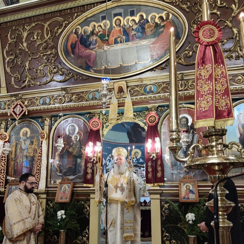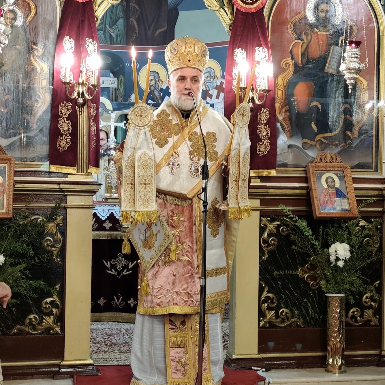 Κατά τον πανηγυρικό Εσπερινό, χοροστάτησε ο Σεβασμιώτατος κ. Αντώνιος, ενώ κήρυξε τον θείο λόγο ο Θεοφιλέστατος κ. Νικόδημος αναφέροντας ότι η Εκκλησία, με τη σοφία του Αγίου Πνεύματος, δεν προβάλλει τα πρόσωπα των αγίων για να τα θαυμάζουμε από απόσταση, σαν ιστορικά μνημεία ηθικού μεγαλείου, αλλά για να στεκόμαστε απέναντί τους ως καθρέφτες αυτογνωσίας. Οι άγιοι δεν μας αναπαύουν, μας ελέγχουν. Και ο έλεγχος αυτός δεν είναι καταδίκη, αλλά πρόσκληση σε μετάνοια.
