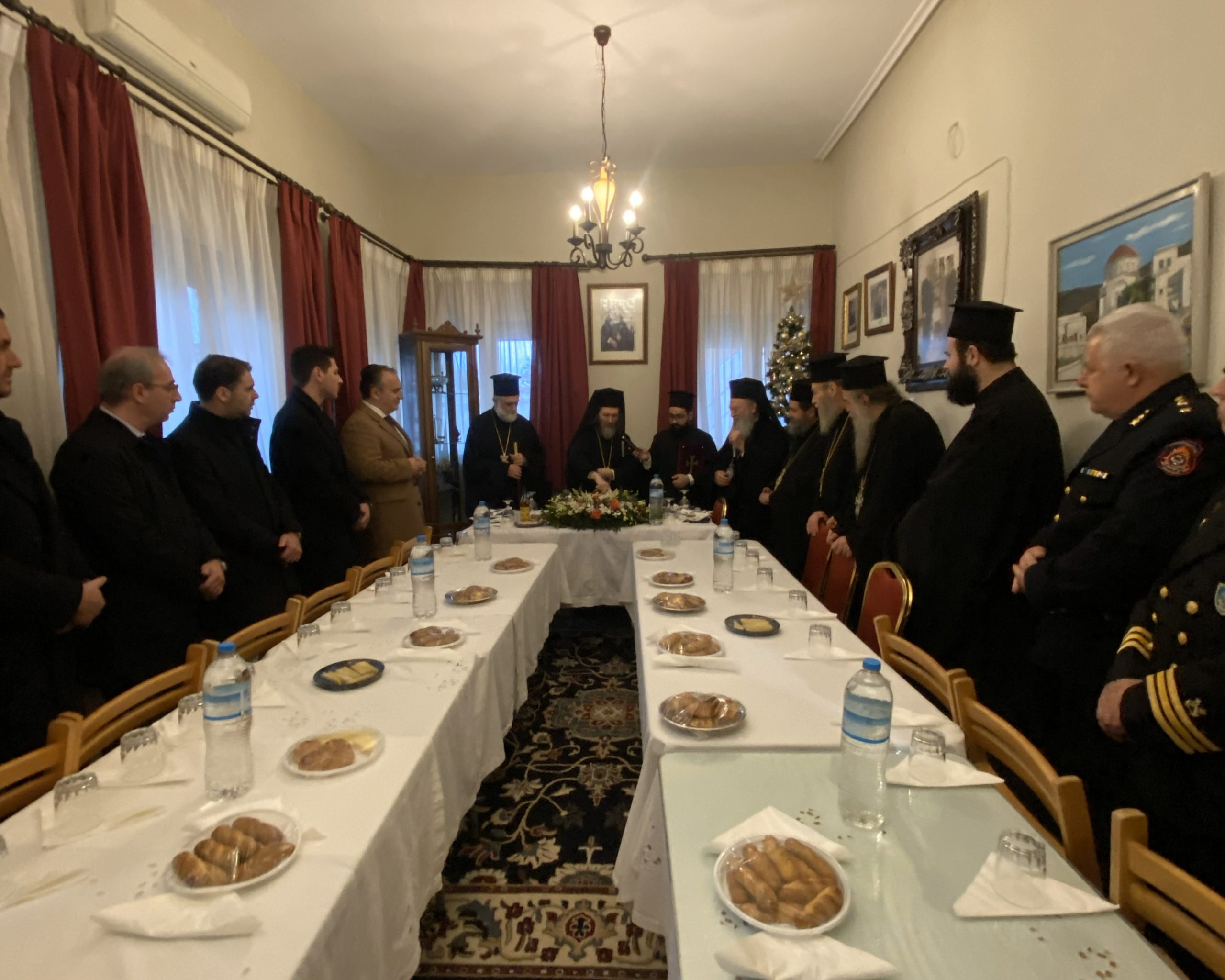 Έπειτα, οι Αρχιερείς επισκέφθηκαν το παρακείμενο Βησσαριώνειο Εκκλησιαστικό Γηροκομείο, όπου, παρουσία των εκπροσώπων των αρχών του τόπου, ευλόγησαν την αγιοβασιλόπιττα του Ιδρύματος.