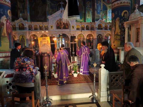 Κατά τον Όρθρο της Μεγάλης Παρασκευής (εσπέρας Μέγαλης Πέμπτης) ο Σεβασμιώτατος Μητροπολίτης Χαλκίδος κ. Χρυσόστομος χοροστάτησε στον υπό αναστήλωση ιστορικό Ιερό Ναό Αγίας Παρασκευής πολιούχου Χαλκίδος, όπου συμμετείχε μεγάλο πλήθος χριστιανών.
