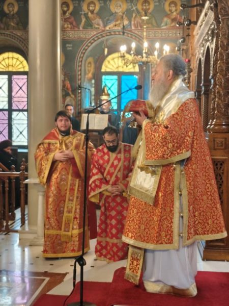Μετά την απόλυση της θείας Λειτουργίας, ο Σεβασμιώτατος δέχθηκε δωρεά τροφίμων προς το ενοριακό συσσίτιο του Μητροπολιτικού Ναού Χαλκίδος εκ μέρους της Ενώσεως Αστυνομικών Υπαλλήλων Ευβοίας, τους οποίους ευχαρίστησε για την φιλότιμη προσφορά τους.