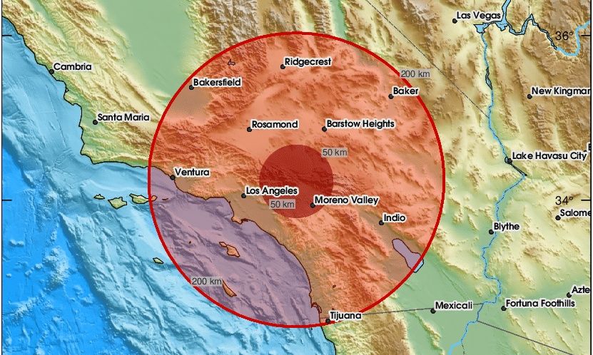Η περιοχή των κομητειών Λος Άντζελες και Όραντζ αισθάνθηκε «ασθενή» σεισμό, όπου κάποιοι άνθρωποι τον αισθάνθηκαν, αλλά άλλοι όχι. Στην περιοχή Los Feliz-East Hollywood, ένα άτομο αισθάνθηκε δύο κύματα κραδασμών – ένα αρχικό κύμα, ακολουθούμενο από μια χαλάρωση του κραδασμού, και στη συνέχεια οι τοίχοι άρχισαν να τρέμουν.