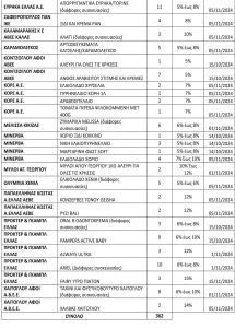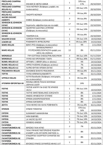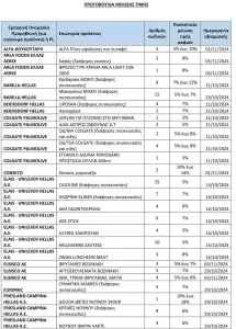 Δείτε τον αναλυτικό πίνακα με συνολικά 362 κωδικούς προϊόντων εταιρειών στον οποίο παρουσιάζεται η ποσοστιαία μείωση τιμής ραφιού και η ημερομηνία εφαρμογής της μείωσης.