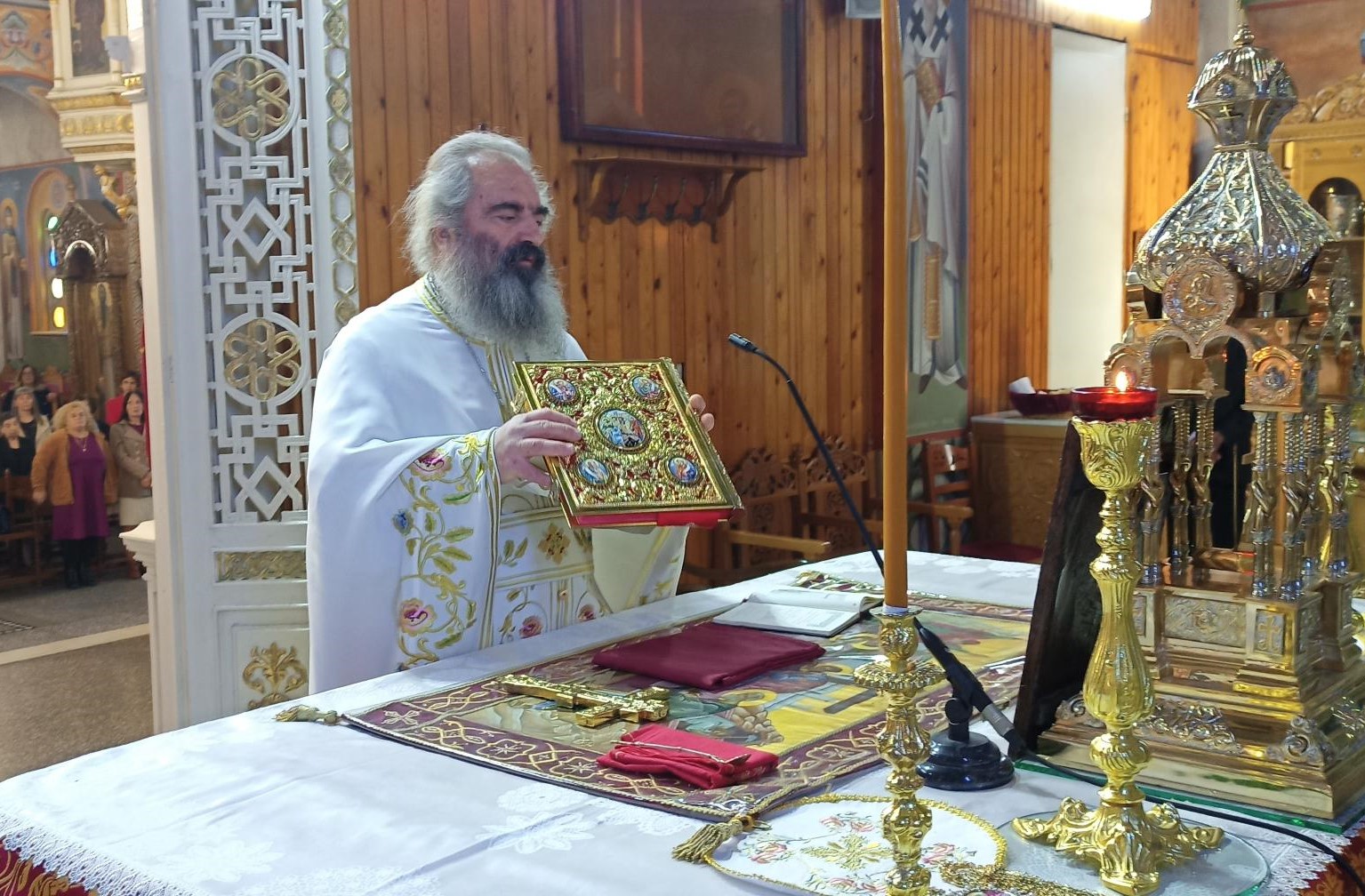 Προ του πέρατος της Θείας Λειτουργίας ο Σεβασμιώτατος κηρύττοντας τον θείο λόγο αναφέρθηκε στα μηνύματα της ευαγγελικής περικοπής και στο γεγονός της ομολογίας του Αποστόλου Θωμά, τονίζοντας ότι η ομολογία αυτή πρέπει να αποτελεί ένα πρότυπο ομολογίας για κάθε χριστιανό.
