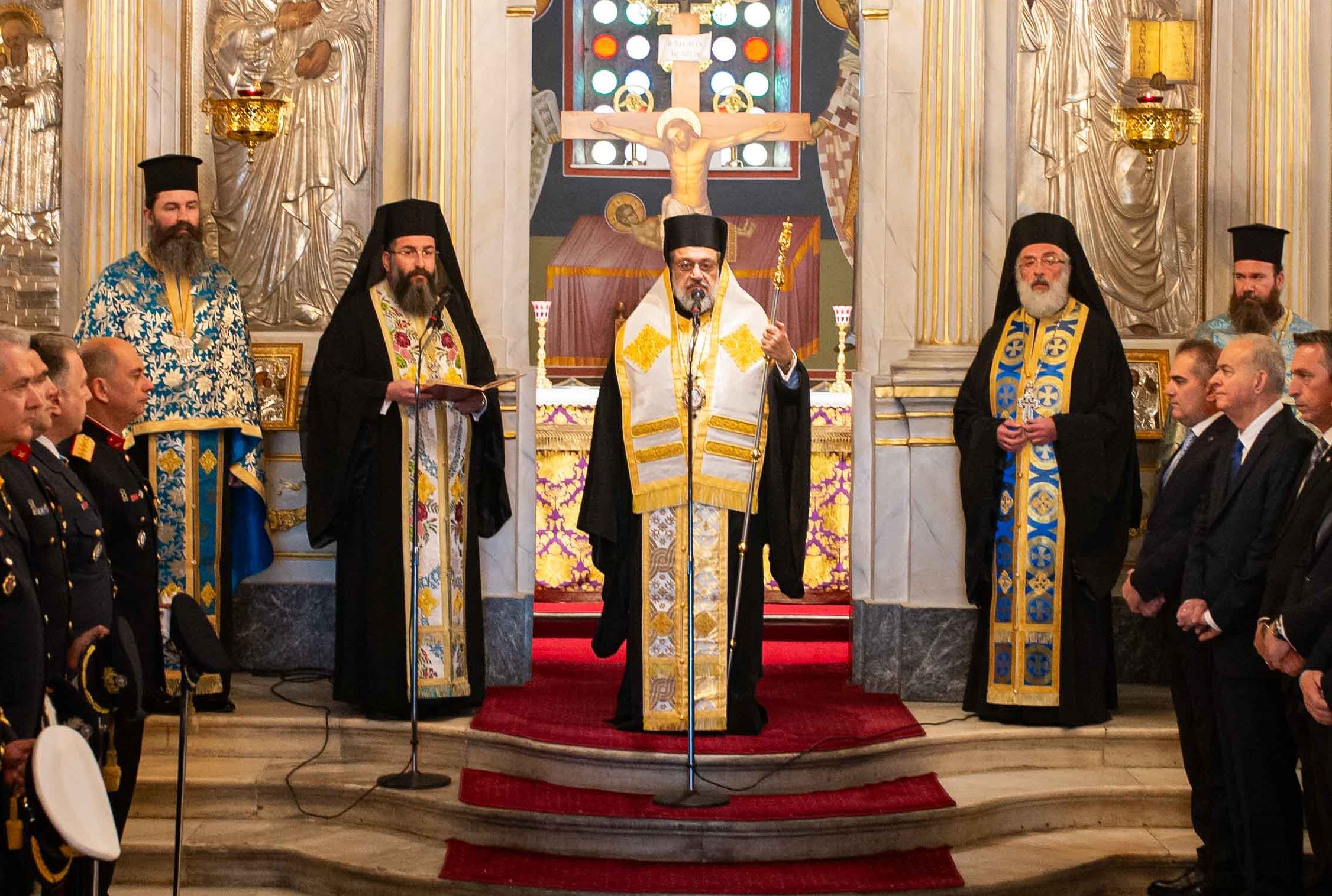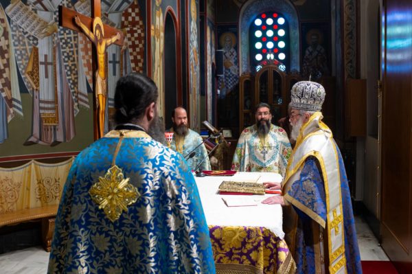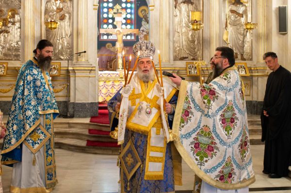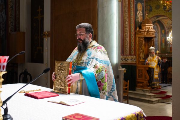 Τον Σεβασμιώτατο πλαισίωσαν ο Πρωτοσύγκελλος της Ιεράς Μητροπόλεως Μεσσηνίας Αρχιμανδρίτης Φίλιππος Χαμαργιάς και οι εφημέριοι του ναού Πρωτοπρεσβύτεροι Κρεσφόντης Πουλόπουλος και Σωτήριος Τζαϊλέας, ενώ παρέστη συμπροσευχόμενος εντός του Ιερού Βήματος ο Σεβασμιώτατος Μητροπολίτης Μεσσσηνίας κ. Χρυσόστομος, ο οποίος κήρυξε και τον θείο λόγο.