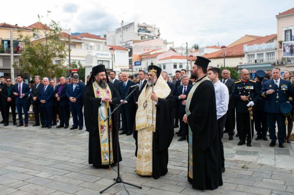 Εν συνεχεία τελέσθηκε η επίσημη Δοξολογία, στην οποία χοροστάτησε ο Σεβασμιώτατος Μητροπολίτης Μεσσηνίας κ. Χρυσόστομος, παρουσία της πολιτικής και στρατιωτικής ηγεσίας, ενώ τον πανηγυρικό της ημέρας εκφώνησε η Επίκουρη Καθηγήτρια, του Τμήματος Φιλολογίας του Πανεπιστημίου Πελοποννήσου, κ. Σοφία Καπετανάκη.