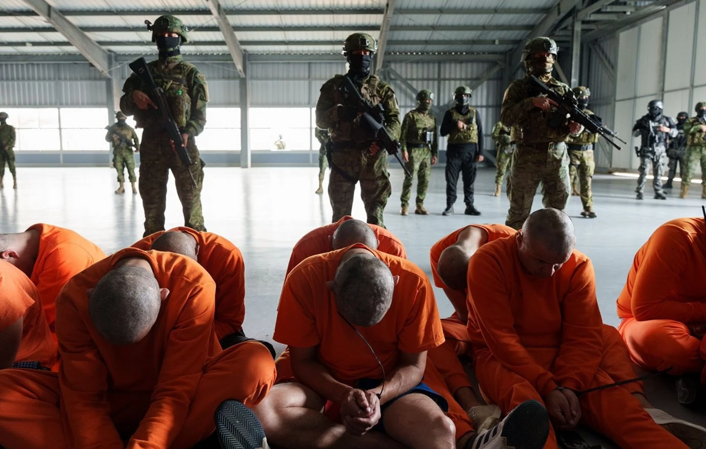 «Το έγκλημα ήθελε να προκαλέσει τον Ισημερινό (…) Σήμερα, ο Ισημερινός απάντησε με πράξεις», διατυμπάνισε μέσω X ο πρόεδρος Νομπόα, συνοδεύοντας την ανάρτηση με φωτογραφίες που εικονίζουν κάπου είκοσι κρατούμενους, με πορτοκαλί στολές, τα χέρια δεμένα, τα κεφάλια ξυρισμένα και σκυμμένα, καθιστούς, έχοντας πίσω τους στρατιωτικούς με αυτόματα τουφέκια και καλυμμένα πρόσωπα.