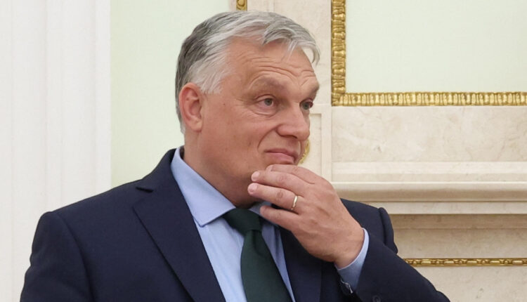 Ο πρόεδρος της Ρωσίας Βλαντιμίρ Πούτιν ανταλλάσσει χειραψία με τον πρωθυπουργό της Ουγγαρίας Βίκτορ Όρμπαν κατά τη διάρκεια συνάντησης στη Μόσχα, Ρωσία 5 Ιουλίου 2024.