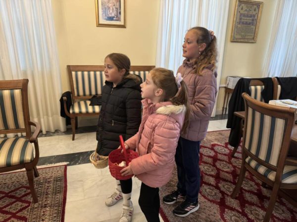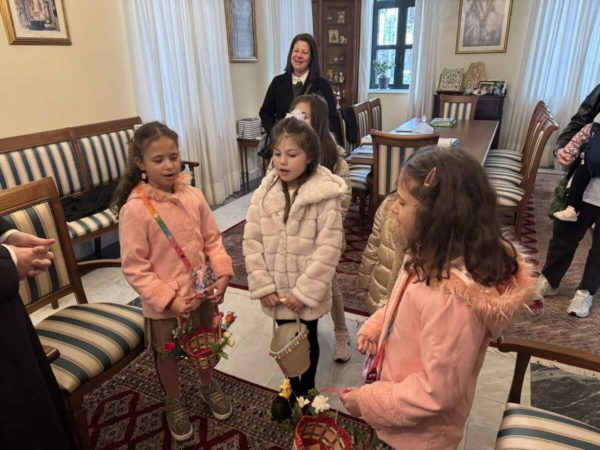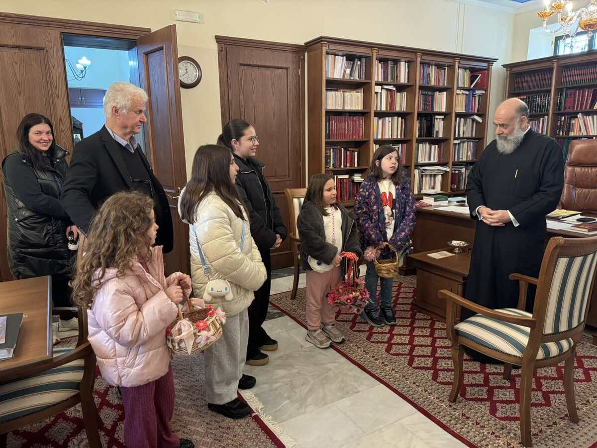 Χαρούμενες παιδικές παρουσίες, χρώματα, άρωμα λουλουδιών, όμορφα στολισμένα καλαθάκια και γλυκές μελωδίες, πλημμύρισαν την Πέμπτη 2 Απριλίου 2026 τα γραφεία της Ιεράς Μητροπόλεως Θεσσαλιώτιδος και Φαναριοφερσάλων, με αφορμή την επίσκεψη κοριτσιών που έψαλαν τα παραδοσιακά κάλαντα του Λαζάρου στον Σεβασμιώτατο Μητροπολίτη Θεσσαλιώτιδος και Φαναριοφερσάλων κ. Τιμόθεο, μεταφέροντας το χαρμόσυνο μήνυμα της επικείμενης Αναστάσεως.