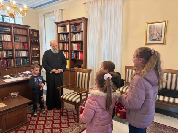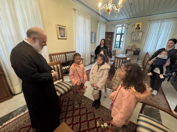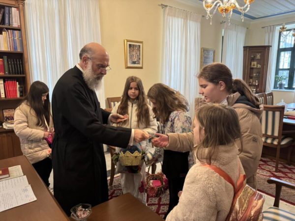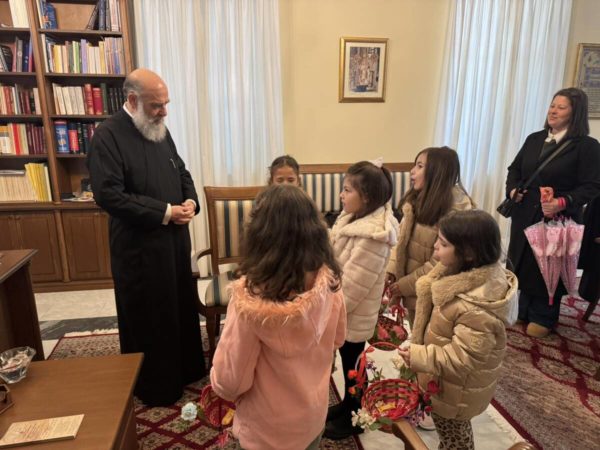 Ο Σεβασμιώτατος τα υποδέχθηκε με ιδιαίτερη πατρική αγάπη και εγκαρδιότητα, ευχαριστώντας τα για την όμορφη αυτή παρουσία τους. Απευθυνόμενος προς αυτά, έκανε αναφορά στο θαύμα της Αναστάσεως του Λαζάρου, υπογραμμίζοντας το βαθύτερο πνευματικό του μήνυμα, ενώ στάθηκε και στη σημασία της Αγίας και Μεγάλης Εβδομάδος ως περιόδου κατανύξεως, προσευχής και εσωτερικής προετοιμασίας για το Πάσχα.