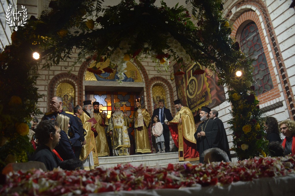 Ο Σεβασμιώτατος κ. Βαρνάβας, αφού ευλόγησε την ιερή πομπή, απηύθυνε λόγους παραμυθητικούς προς το ποίμνιο της Δυτικής Θεσσαλονίκης. Στην ομιλία του υπογράμμισε τη «μανική» αγάπη του Θεού προς τον άνθρωπο, μια αγάπη που θυσιάζεται για να χαρίσει τη ζωή.