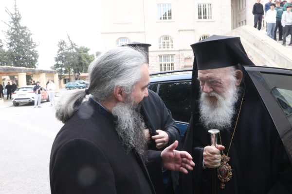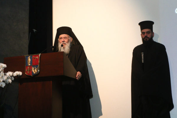 Ο Αρχιεπίσκοπος με την σειρά του εξέφρασε τις ευχαριστίες του για την πρόσκληση και μοιράστηκε λίγες σκέψεις του για αυτόν τον ευλογημένο χώρο του Κολλεγίου, για τον οποίο έχει διαβάσει και έχει ακούσει πολλά. «Είμαι πολύ χαρούμενος που δίνω το παρών σε αυτήν την εκδήλωση αυτού του Σχολείου» υπογράμμισε. Ανέφερε μάλιστα ότι οι εντυπώσεις που έχει αποκομίσει από εκείνους που έχουν ευεργετηθεί από τα Σχολεία και από όλους όσοι εργάζονται σε αυτά του έχουν αφήσει ζωντανές αναμνήσεις. Στη συνέχεια, αναφέρθηκε στην εβδομάδα που προηγήθηκε, κατά την οποία συναντήθηκε με μαθητές από πολλά σχολεία, από τη Θεσσαλονίκη μέχρι τους Λειψούς. Τόνισε μάλιστα ότι οι εμπειρίες αυτές συνέδεαν το πνεύμα των παιδιών με το πνεύμα της σημερινής συνάξεως. Όπως είπε στη Θεσσαλονίκη τον υποδέχτηκαν χίλια διακόσια παιδιά, τα οποία έψαλλαν τους Χαιρετισμούς σε μία γεμάτη εκκλησία, δημιουργώντας μια βαθιά θρησκευτική ατμόσφαιρα.