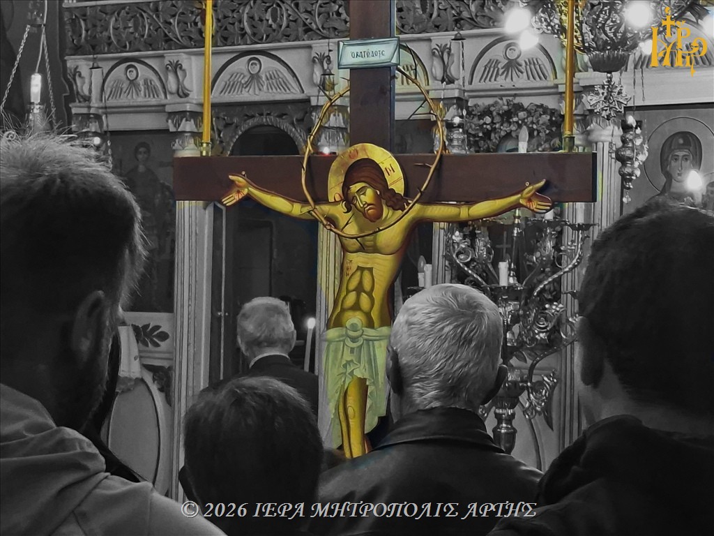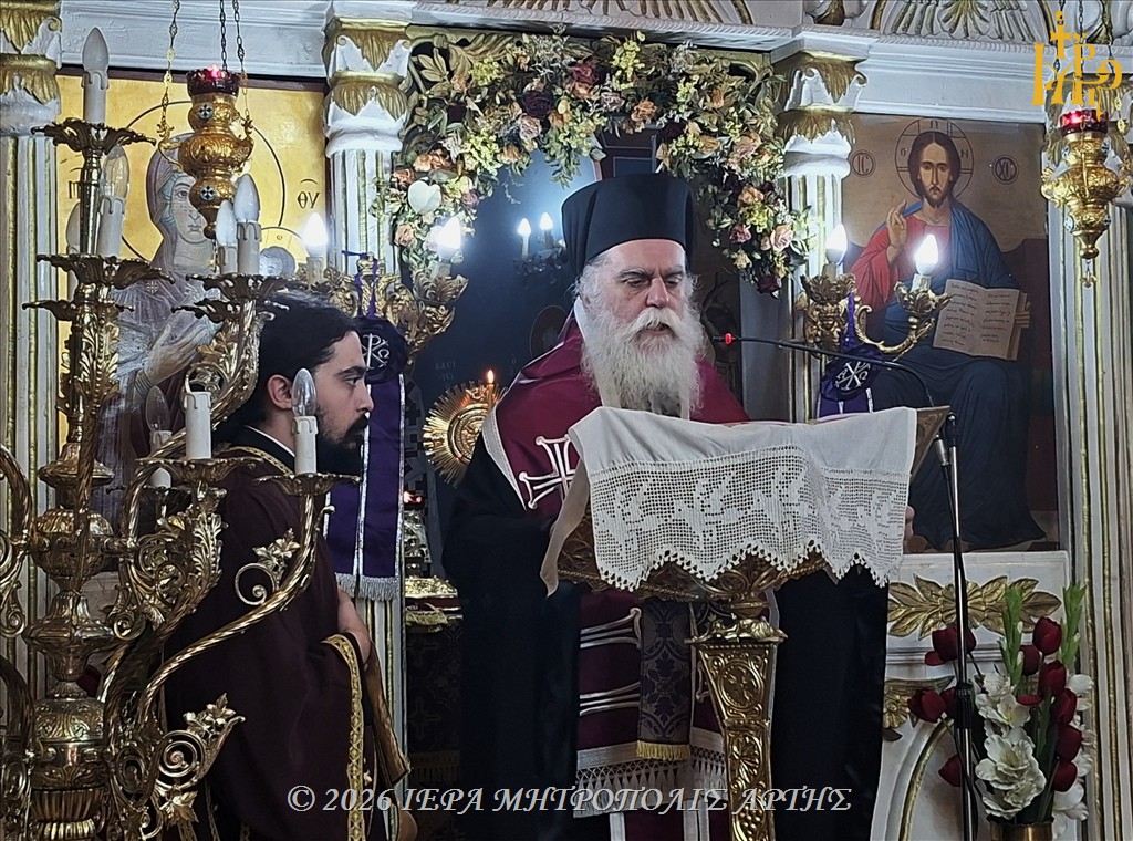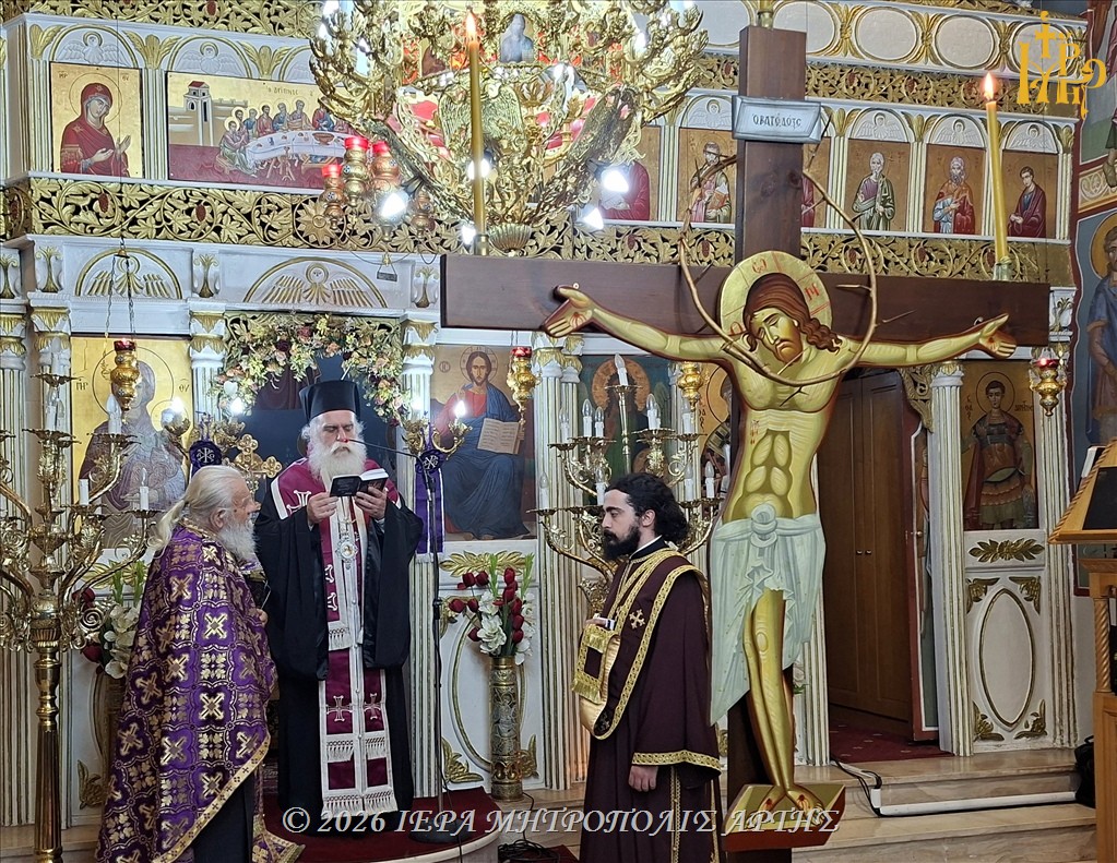 Την Μεγάλη Πέμπτη, 9 Απριλίου 2026, εσπέρας, στον ενοριακό Ιερό Ναό της Αγίας Κυριακής Κλειδίου Άρτας, ο Σεβασμιώτατος Μητροπολίτης Άρτης κ. Καλλίνικος ετέλεσε την Ακολουθία των Αγίων Παθών, μέσα σε κλίμα βαθιάς κατάνυξης και με τη συμμετοχή πιστών.