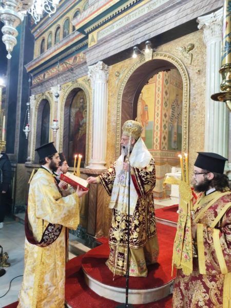 Την Α΄ Κυριακή των Νηστειών, την Κυριακή της Ορθοδοξίας, 1η Μαρτίου 2026, ο Σεβασμιώτατος Μητροπολίτης Θεσσαλιώτιδος και Φαναριοφερσάλων κ. Τιμόθεος χοροστάτησε στον Όρθρο και τέλεσε τη Θεία Λειτουργία του Μεγάλου Βασιλείου, στον Ιερό Μητροπολιτικό Ναό Αγίων Κωνσταντίνου και Ελένης Καρδίτσης, όπου λίγο πριν από την Απόλυση, προέστη της λιτανεύσεως των αγίων Εικόνων, μέσα σε κλίμα κατάνυξης και εορταστικής χαράς για τον θρίαμβο της Ορθοδοξίας, και στο τέλος απηύθυνε το θείο κήρυγμα προς το εκκλησίασμα.