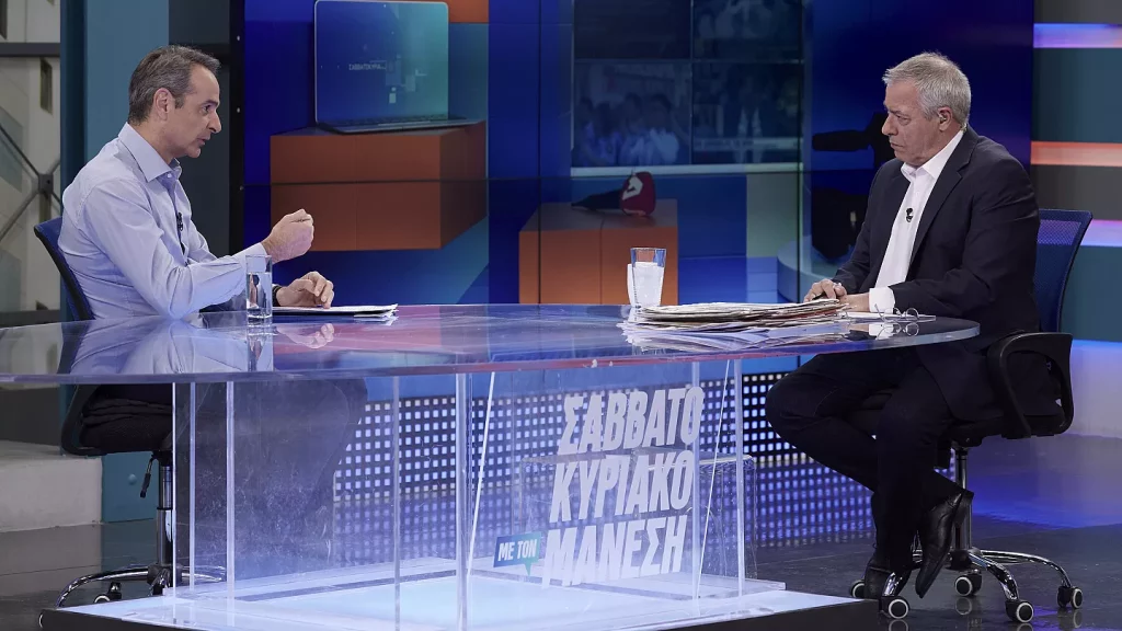 Στην εκπομπή «Σαββατοκύριακο με τον Μάνεση» έδωσε συνέντευξη ο Κυριάκος Μητσοτάκης δηλώνοντας σε δημόσια τηλεθέαση ότι οι παράνομοι μετανάστες έγιναν πλέον νόμιμοι τουρίστες.