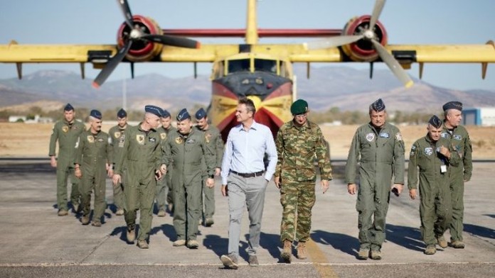 Ο κ. Μητσοτάκης, συνοδευόμενος από τον αρχηγό ΓΕΕΘΑ, στρατηγό Δημήτριο Χούπη και τον αρχηγό ΓΕΑ, αντιπτέραρχο Δημοσθένη Γρηγοριάδη, ενημερώθηκε για τις αποστολές των πυροσβεστικών αεροσκαφών Canadair CL-215 και CL-415 που συμβάλλουν στο απαιτητικό έργο κατάσβεσης των πυρκαγιών, ενώ επισκέφθηκε και τη Μοίρα Συντήρησης Αεροσκαφών, όπου συνομίλησε με τους τεχνικούς που συντηρούν τα αεροσκάφη καθ’ όλη τη διάρκεια του 24ωρου για να ανταποκρίνονται με αποτελεσματικότητα στις αποστολές τους, σύμφωνα πάντα με κυβερνητικές πηγές.