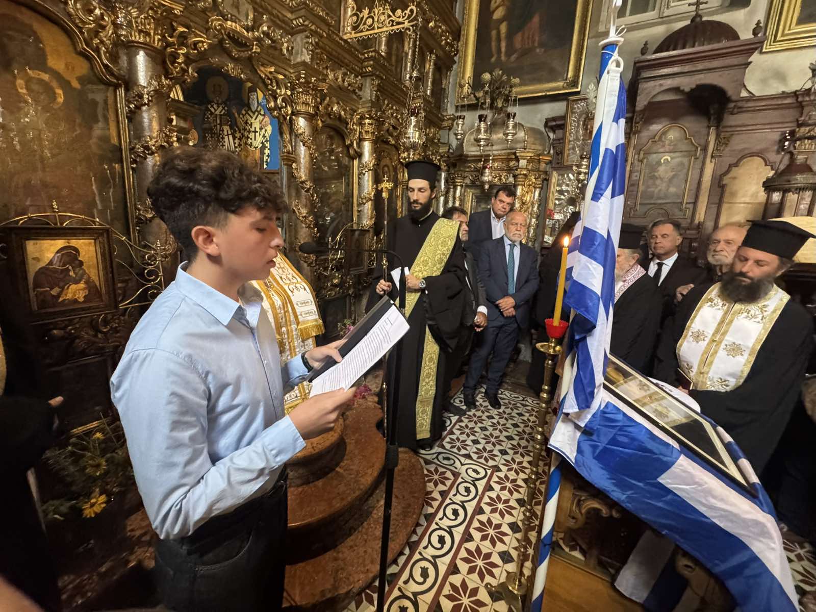 Ιδιαίτερη συγκίνηση προκάλεσαν τα λόγια του μαθητή της Α’ Λυκείου Μάριου Κόλλα για τον Ιωάννη Καποδίστρια ως πρότυπο θυσίας, ανιδιοτέλειας, χριστιανικής ταπείνωσης και πατριωτισμού. Ο Μάριος μίλησε εκ μέρους της εκπαιδευτικής κοινότητας και δέχτηκε τα συγχαρητήρια του Σεβασμιωτάτου Μητροπολίτου Κερκύρας κ. Νεκταρίου, ο οποίος μετά την τέλεση του μνημοσύνου έκανε τρισάγιο στον τάφο του Κυβερνήτη και κατέθεσε στεφάνι, ενώ η Χορωδία τραγούδησε τον Εθνικό Ύμνο.