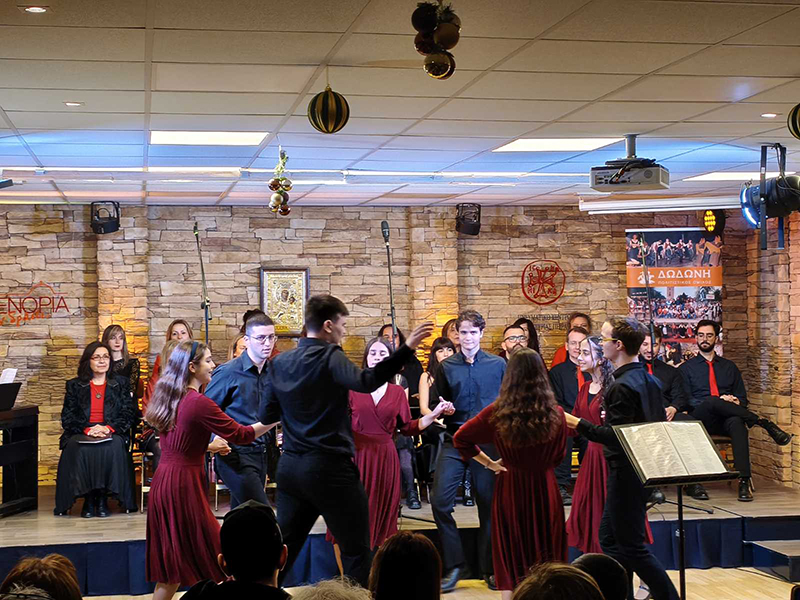 Ο Πολιτιστικός Όμιλος ΔΩΔΩΝΗ πραγματοποίησε ένα αφιέρωμα στο χορό, τη μουσική και το τραγούδι, το Σάββατο 20 Δεκεμβρίου, στο Πνευματικό Κέντρο του Ιερού Ναού Ευαγγελιστρίας Πειραιά, στο πλαίσιο του προγράμματος «ΕΝΟΡΙΑ εν δράσει…».