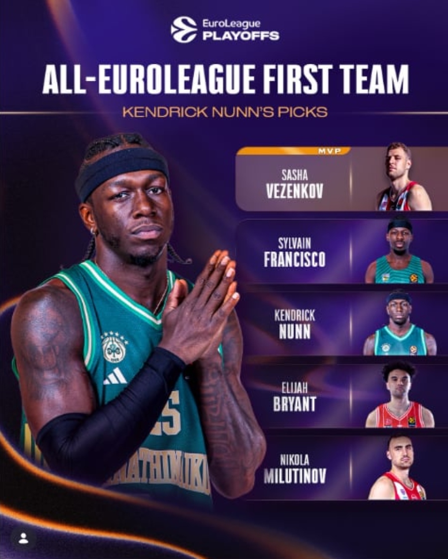 Ο Κέντρικ Νάν κλήθηκε να επιλέξει τον MVP της φετινής Euroleague επιλέγοντας τον φόργουορντ του συλλόγου του Ολυμπιακού.
