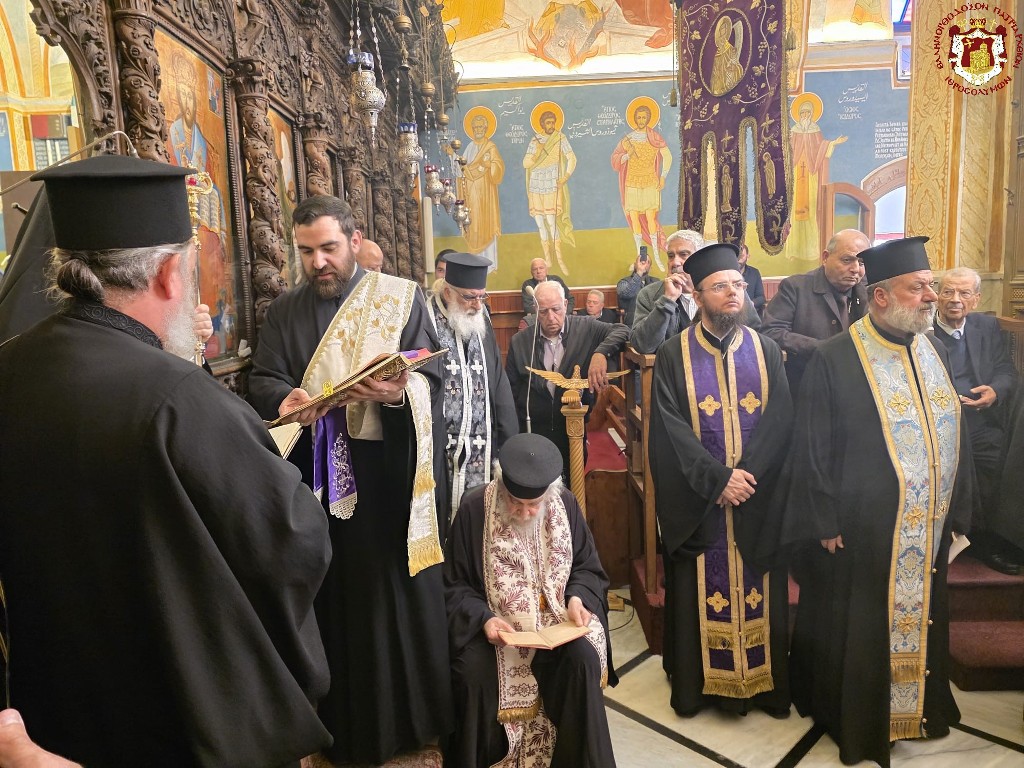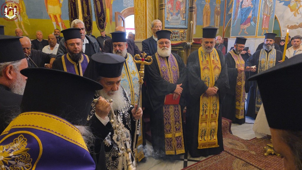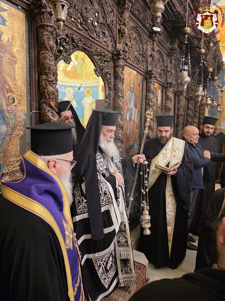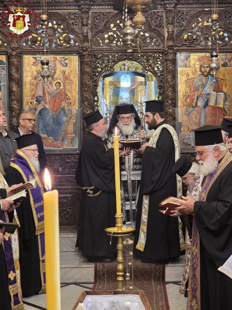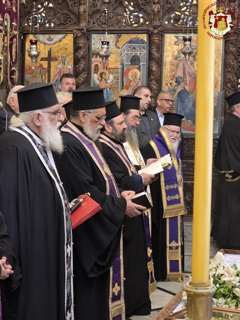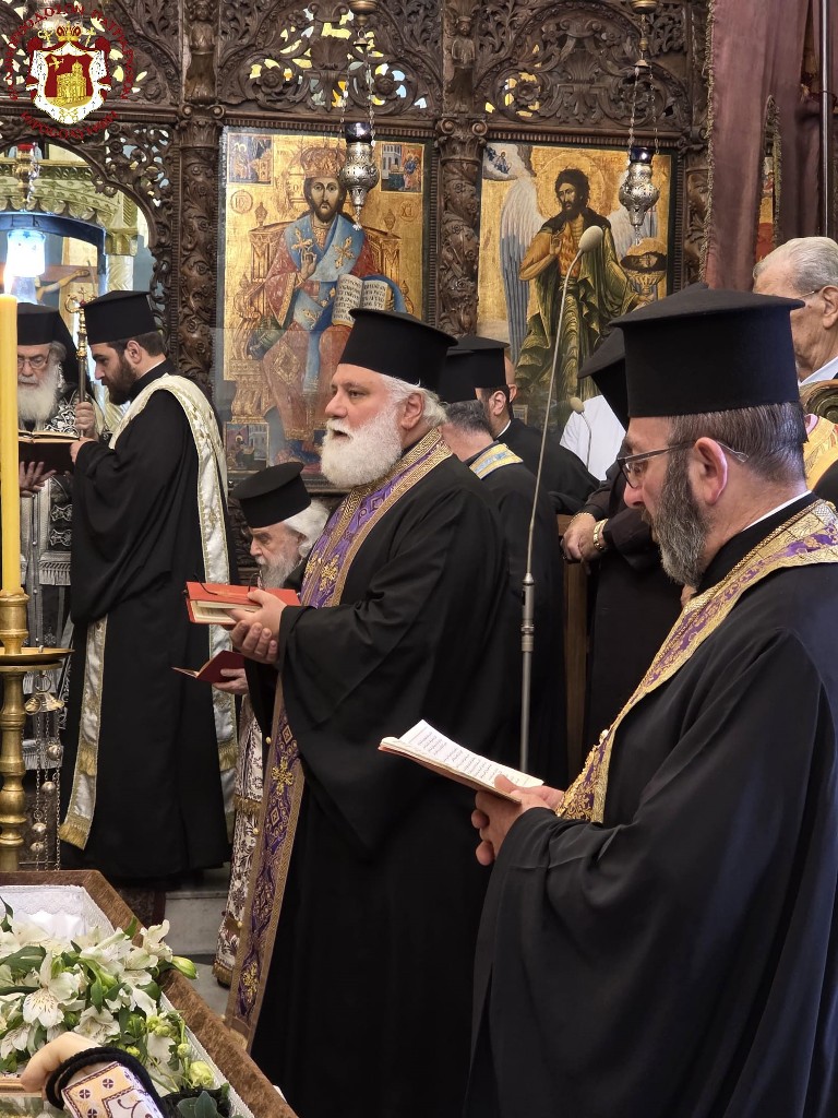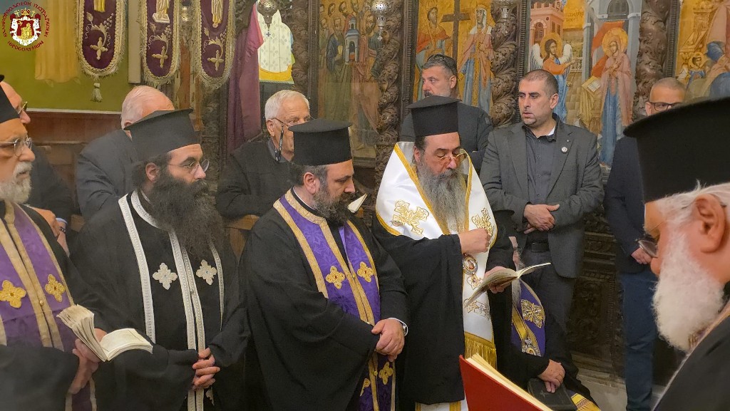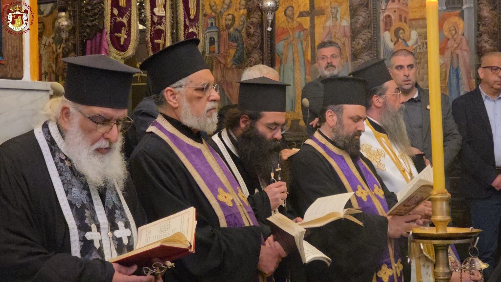 Κατά την ακολουθία συγχοροστάτησαν ο Σρβ. Μητροπολίτης Ναζαρέτ κ. Κυριακός, ο Σεβ. Αρχιεπίσκοπος Κωνσταντίνης κ. Αρίσταρχος, ο Σεβ. Μητροπολίτης Άκκρης κ. Μακάριος, Αγιοταφίτες Ιερομόναχοι, Αραβόφωνοι ιερείς.