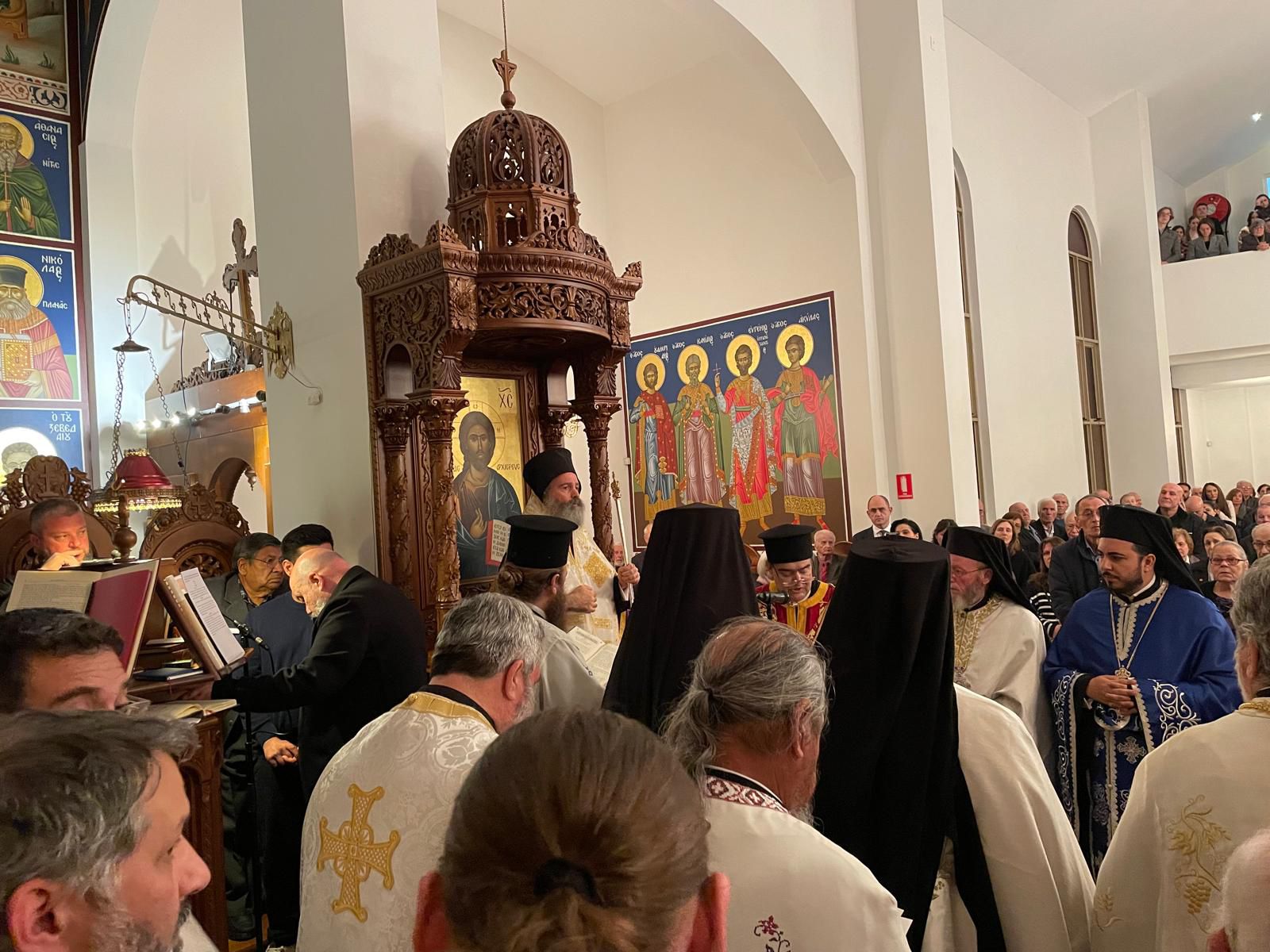 Παρέστησαν συμπροσευχόμενοι ο Σεβασμιώτατος Μητροπολίτης Δέρβης κ. Ιεζεκιήλ, ο επιχώριος Επίσκοπος Χώρας κ. Ευμένιος, οι Επίσκοποι Μελβούρνης κ. Κυριακός και Νικοπόλεως κ. Θεμιστοκλής (Πατριαρχείο Αλεξανδρείας), ο Πρωτοσύγκελλος της Ιεράς Αρχιεπισκοπής Αυστραλίας, Πανοσιολογιώτατος Αρχιμανδρίτης του Οικουμενικού Θρόνου κ. Χριστοφόρος Κρικέλης, καθώς και κληρικοί της πόλεως Μελβούρνης.