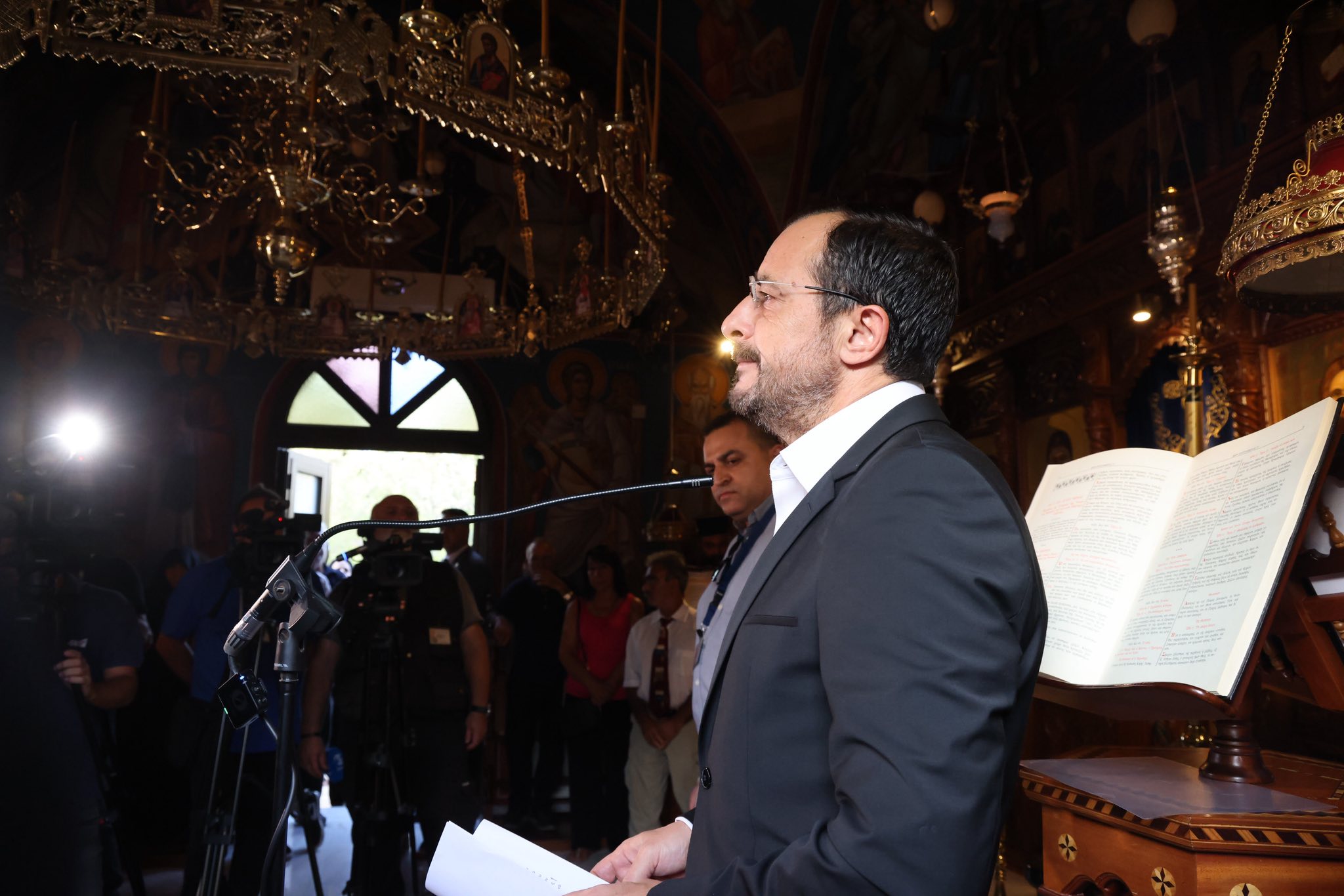 Ο Αρχιεπίσκοπος Γεώργιος και ο Νίκος Χριστοδουλίδης στο τρισάγιο στη μνήμη των θυμάτων της αεροπορικής τραγωδίας «Ήλιος»