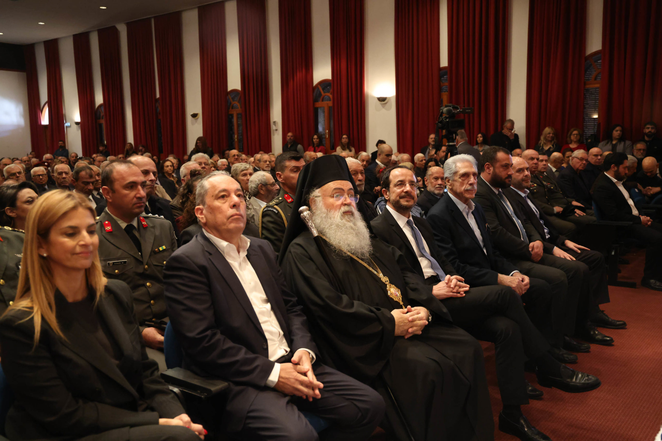 Ο Αρχιεπίσκοπος Κύπρου και ο Νίκος Χριστοδουλίδης σε εκδήλωση προς τιμήν των αγωνιστών της τουρκοανταρσίας 1963-’64