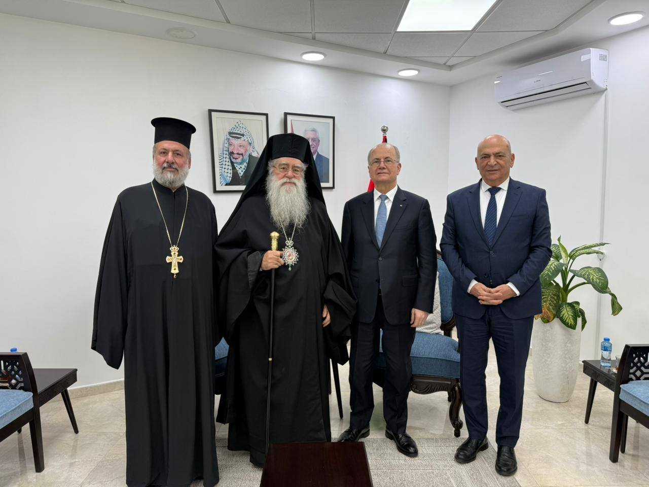Ο Πατριαρχικός Επίτροπος στη Βηθλεέμ, Σεβασμιώτατος Μητροπολίτης Διοκαισαρείας κ. Βενέδικτος, συνοδευόμενος από τον Οικονόμο π. Ήσσα Ταλτζίγιε και τον Πρεσβύτερο π. Ήσσα Μουσλέχ, πραγματοποίησε την Τρίτη 16 Δεκεμβρίου 2025 επίσημη εθιμοτυπική επίσκεψη στον Πρωθυπουργό της Παλαιστινιακής Αρχής, κ. Μοχάμεντ Μουστάφα, παρουσία του Υπουργού Τουρισμού και Αρχαιοτήτων, κ. Χάνι Αλ-Χάγιεκ.