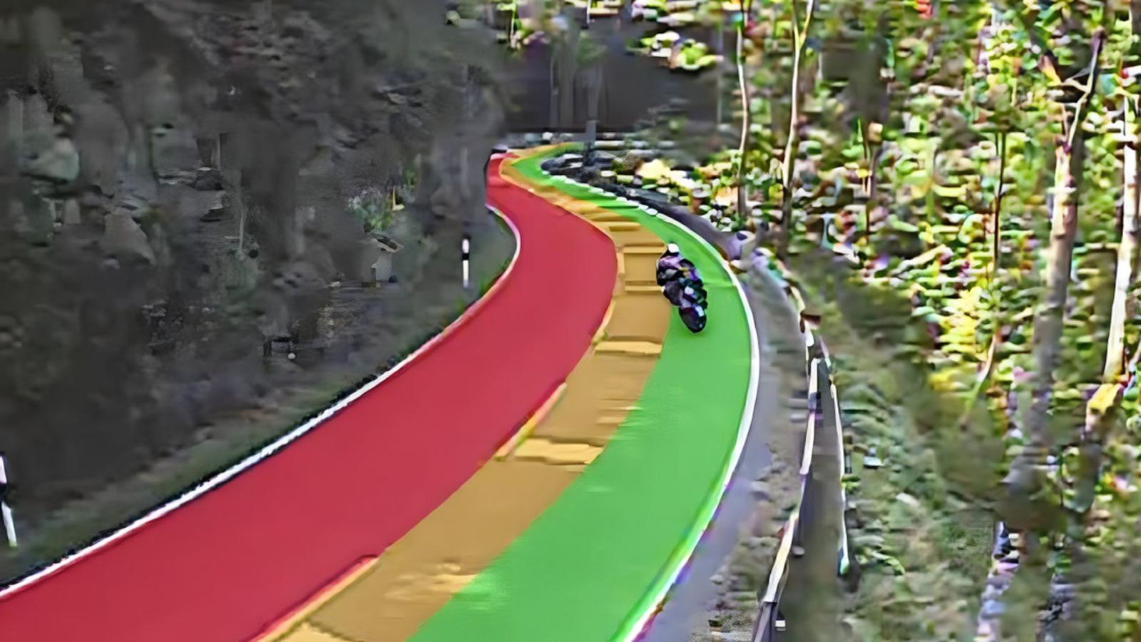 Πώς όμως λειτουργούν οι νέοι τρικολόρε δρόμοι. Η δεξιά λωρίδα είναι βαμμένη σε πράσινο χρώμα, η ενδιάμεση σε πορτοκαλί και η αριστερή σε κόκκινο. Αυτός ο διαχωρισμός του δρόμου με μπογιά, δημιουργεί ζώνες στις οποίες οι μοτοσυκλετιστές γνωρίζουν που πρέπει να πατήσουν και που όχι. Την πορτοκαλί και την κόκκινη λωρίδα θα πρέπει να την αποφεύγουν.