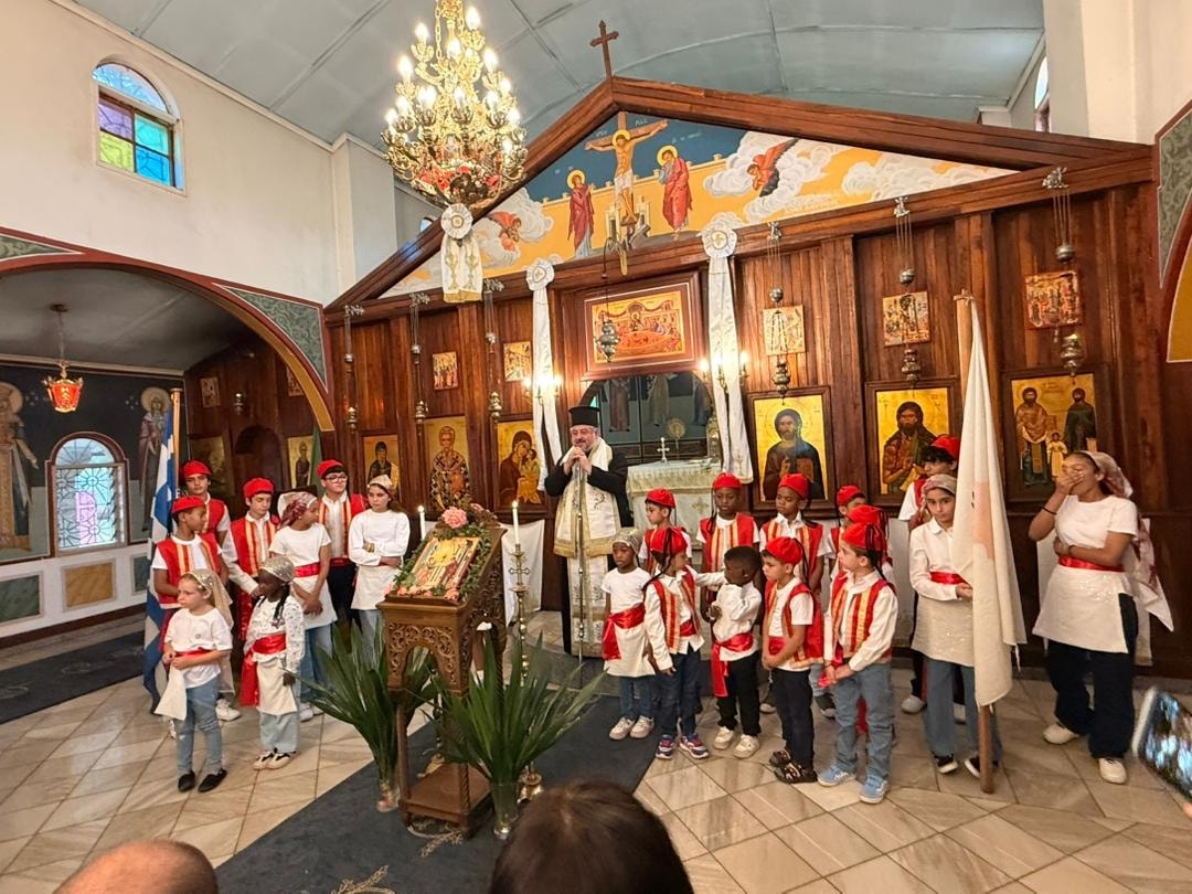 Της πανηγυρικής Δοξολογίας προέστη ο Σεβασμιώτατος Μητροπολίτης Ζάμπιας και Μοζαμβίκης κ. Ιωάννης, ενώ ακολούθησε η σχολική εορτή εντός του ναού.