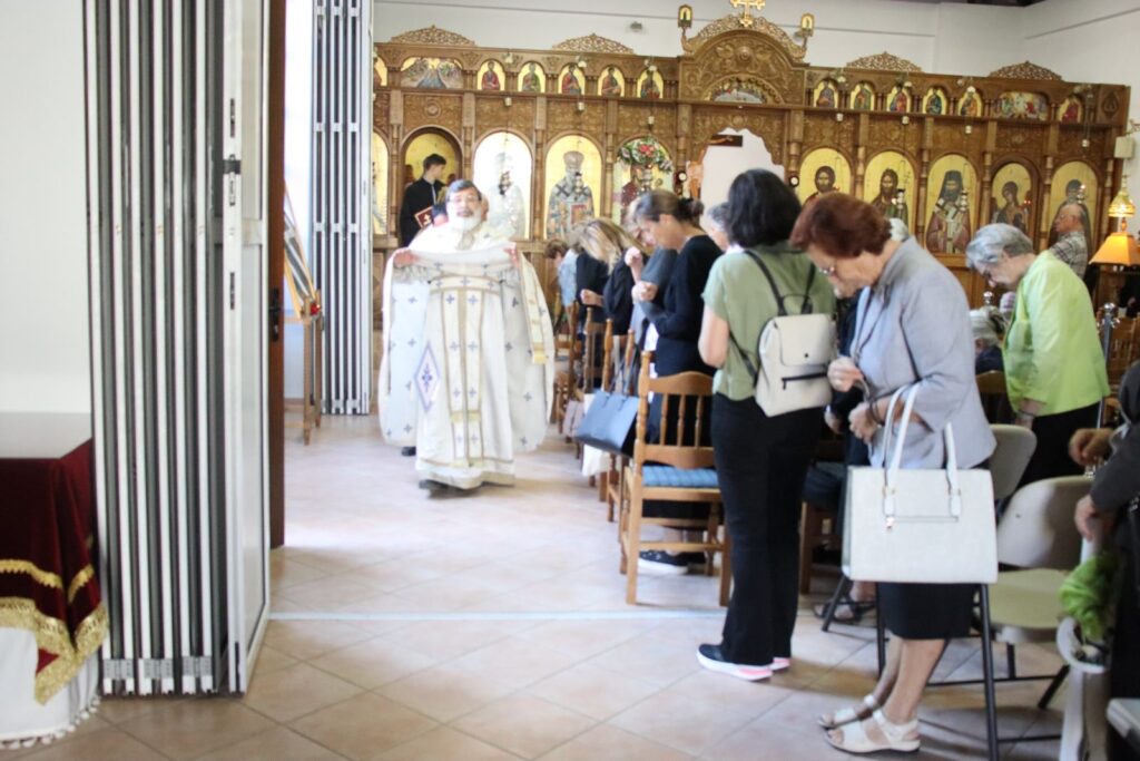 Πιστοί από την πόλη της Μεγαλόπολης, κατέκλεισαν το Ιερό Παρεκκλήσιο, συμμετέχοντας στην πανηγυρική Θεία Λειτουργία με να λάβουν την χάρη της.