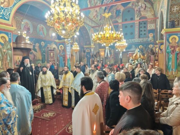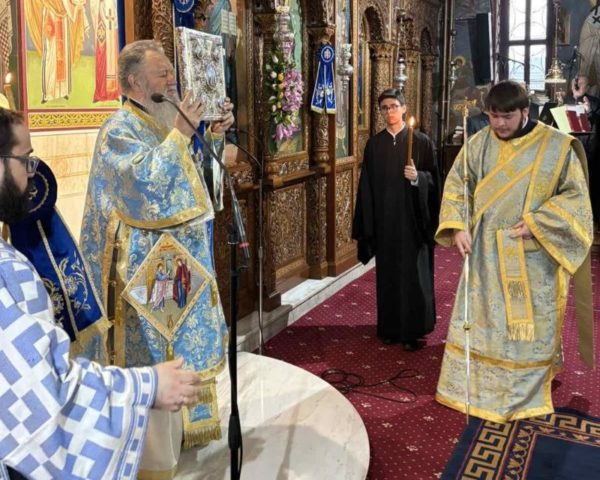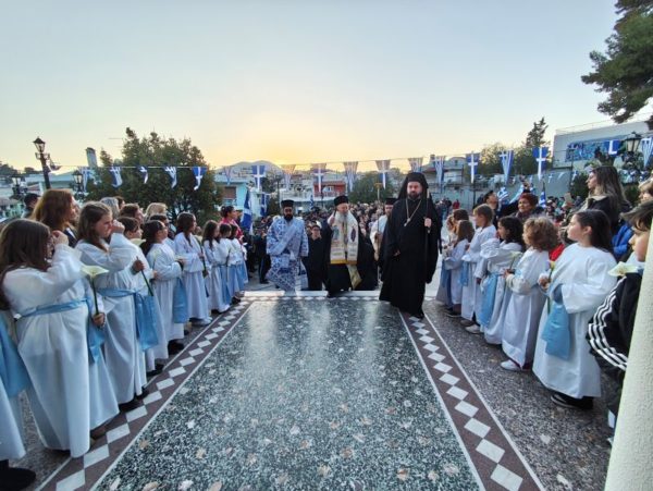 Μετά την επιστροφή της λιτανείας στον Ιερό Ναό τελέσθηκε μεθέορτος Εσπερινός, χοροστατούντους του Σεβασμιωτάτου Μητροπολίτη κ. Χρυσοστόμου.