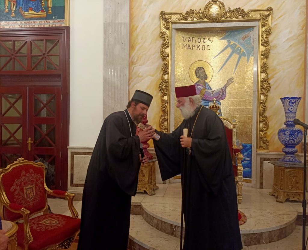 Κατά την αντιφώνησή του ο Θεοφιλέστατος ευχαρίστησε την ΑΘΜ για την εγκάρδια υποδοχή, εδήλωσε τον κοινό ενθουσιασμό όλων για το πολύμοχθο πνευματικό, ιεραποστολικό, ανθρωπιστικό, φιλανθρωπικό και εκπαιδευτικό έργο της Εκκλησίας του Αποστόλου Μάρκου στην Αφρική, ενώ μετέφερε την αδελφική αγάπη του Μακαριωτάτου Προκαθημένου της Σερβίας κ.κ. Πορφυρίου.