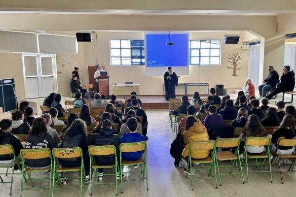 Τέλος, εξέφρασε τις θερμές του ευχαριστίες προς τον Διευθυντή του 6ου Γυμνασίου κ. Γεώργιο Παπαντόπουλο και τη θεολόγο εκπαιδευτικό κ. Γεωργία Καραγκιοζίδου για την άριστη συνεργασία και τη φιλοξενία.