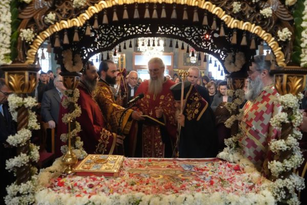 Ο Σεβασμιώτατος κήρυξε προ της αναγνώσεως του ιερού Ευαγγελίου επισημαίνοντας και ερμηνεύοντας συγκεκριμένα περιστατικά από την ζωή του Χριστού, το οποία ανεδείκνυαν προ του Πάθους την δύναμή Του και την εκούσια πορεία Του προς τον θάνατο. Τέτοια ήταν, η άμεση αποξήρανση της ακάρπου συκής, η παράδοξη διχοτόμηση του καταπετάσματος του Ναού του Σολομώντος κατά την ώρα του σταυρικού Του θανάτου καθώς και το ασυμβίβαστο με τα ανθρώπινα δεδομένα γεγονός, ότι πρώτα έκλινε την κεφαλή και μετά παρέδωσε το πνεύμα.