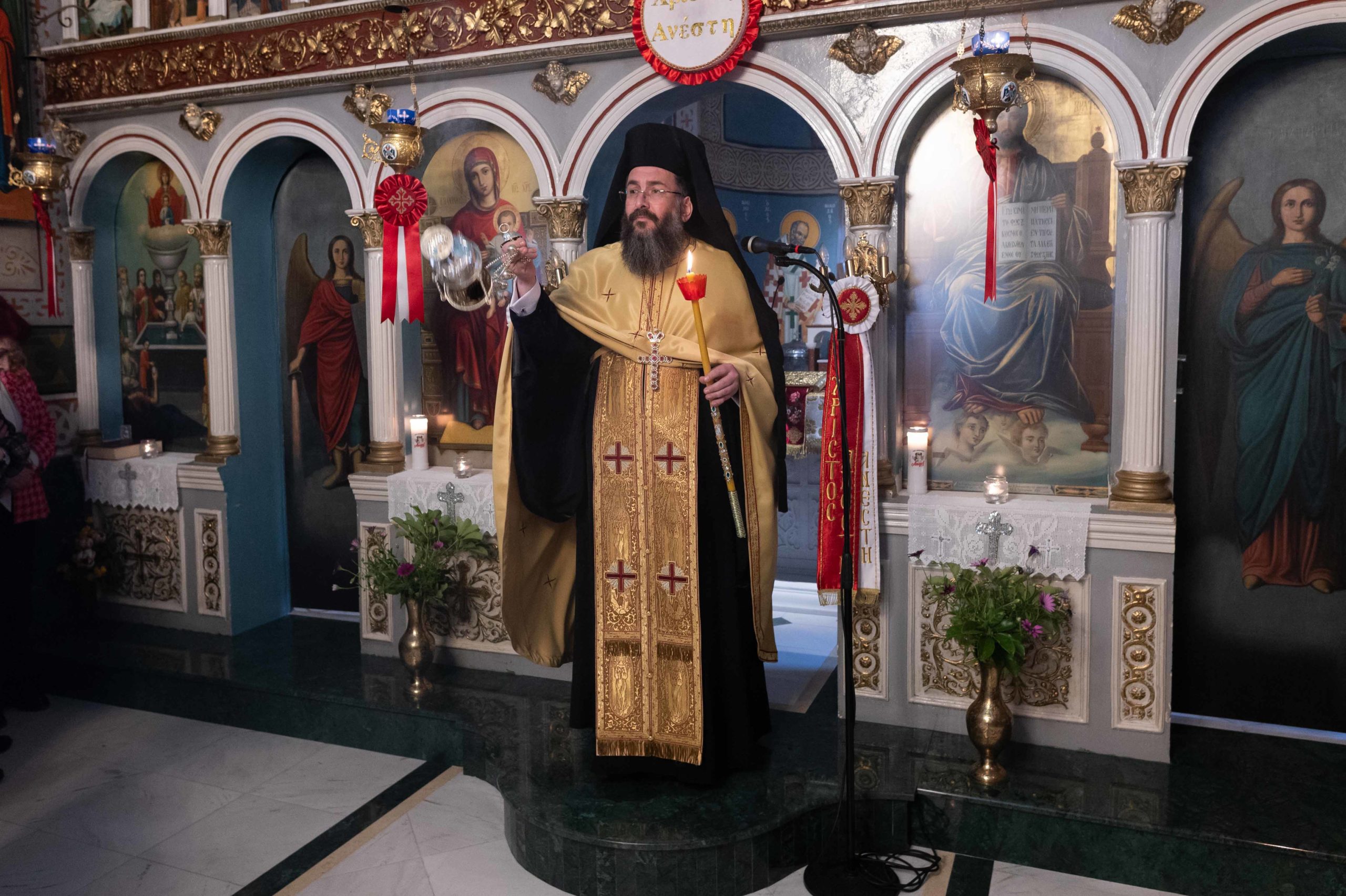 Προ του πέρατος της Ακολουθίας ο Πρωτοσύγκελλος κηρύττοντας τον θείο λόγο αναφέρθηκε στην πνευματική δίψα του σημερινού κόσμου, προβάλλοντας το πρόσωπο της Υπεραγίας Θεοτόκου ως Ζωοδόχο Πηγή, δια της οποίας δύναται ο άνθρωπος να θεραπεύσει την δίψα αυτή. Όπως είπε χαρακτηριστικά: “Όποιος προσπαθεί να ξεδιψάσει με χρήμα, πλούτο και εφήμερη δόξα, καταλήγει σε στεγνά πηγάδια και απολαμβάνει μόνο την ξηρασία τους“.